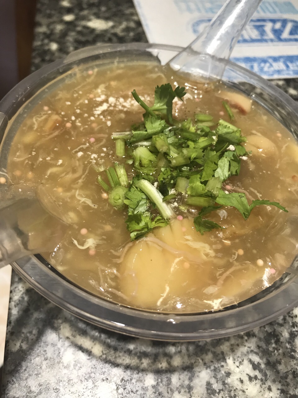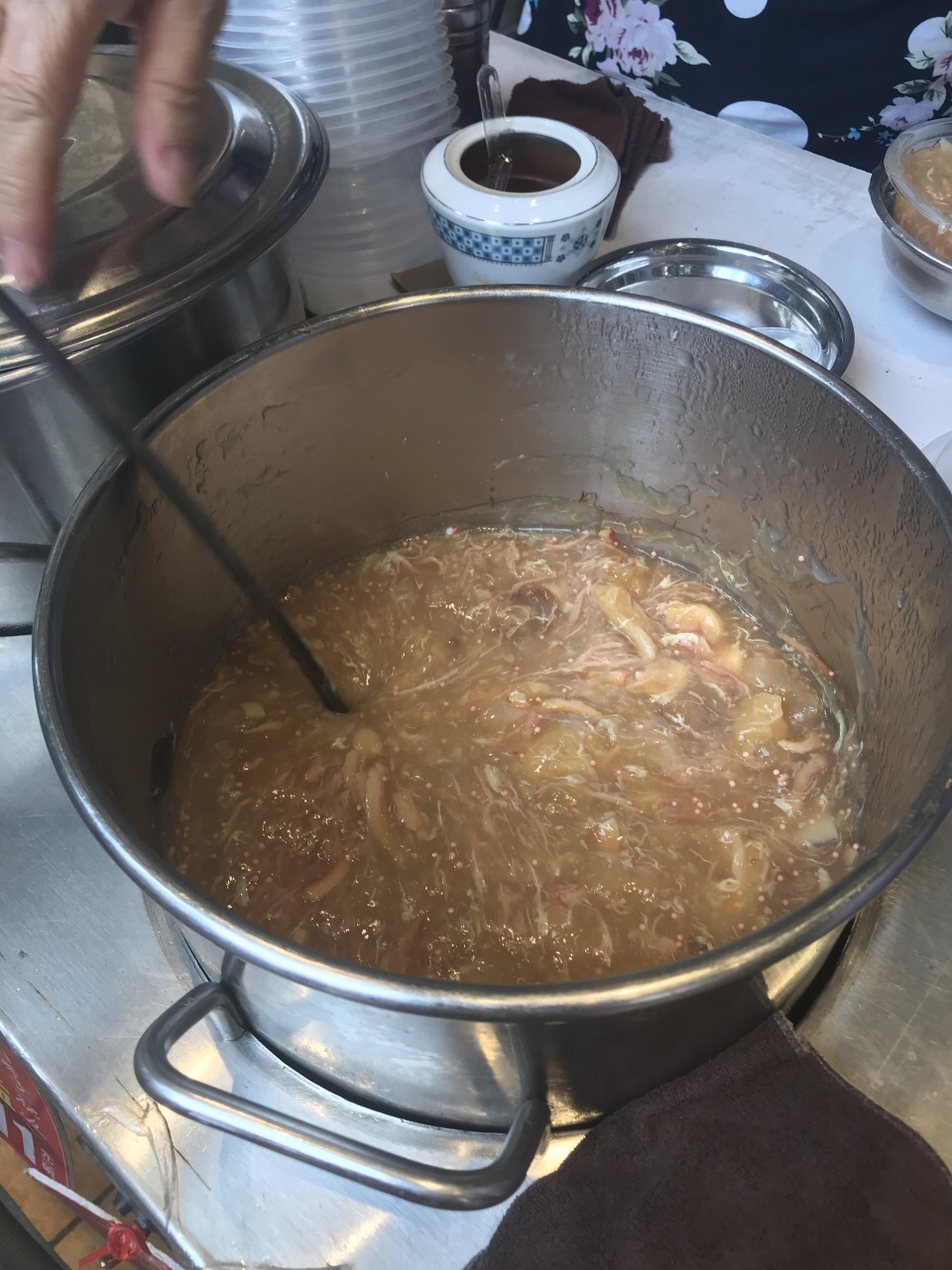 广州吃货之旅 做攻略的无意间搜到的小店铺,里面卖的碗仔翅是获过奖的,就抱着期待去了。其实很喜欢这种街边的小铺子,外表不起眼,其实卖的美食都有自己的特色。 这家店基本上都是外带,阿姨只收现金,收完钱,速度盛上一碗。阿姨说话又快又急,听不懂当地话的我真是干着急……肯定问了问题,也不爱搭理人…… ↘️人比花娇 点了料最多,价格最贵的人比花娇。食材有鱼翅,花胶,北极贝,海胆蓉。用料很实在,鲜美可口,吃起来清爽香甜。整体口感软糯黏稠,营养足足的,性价比还不错