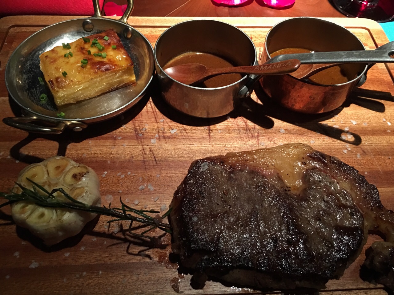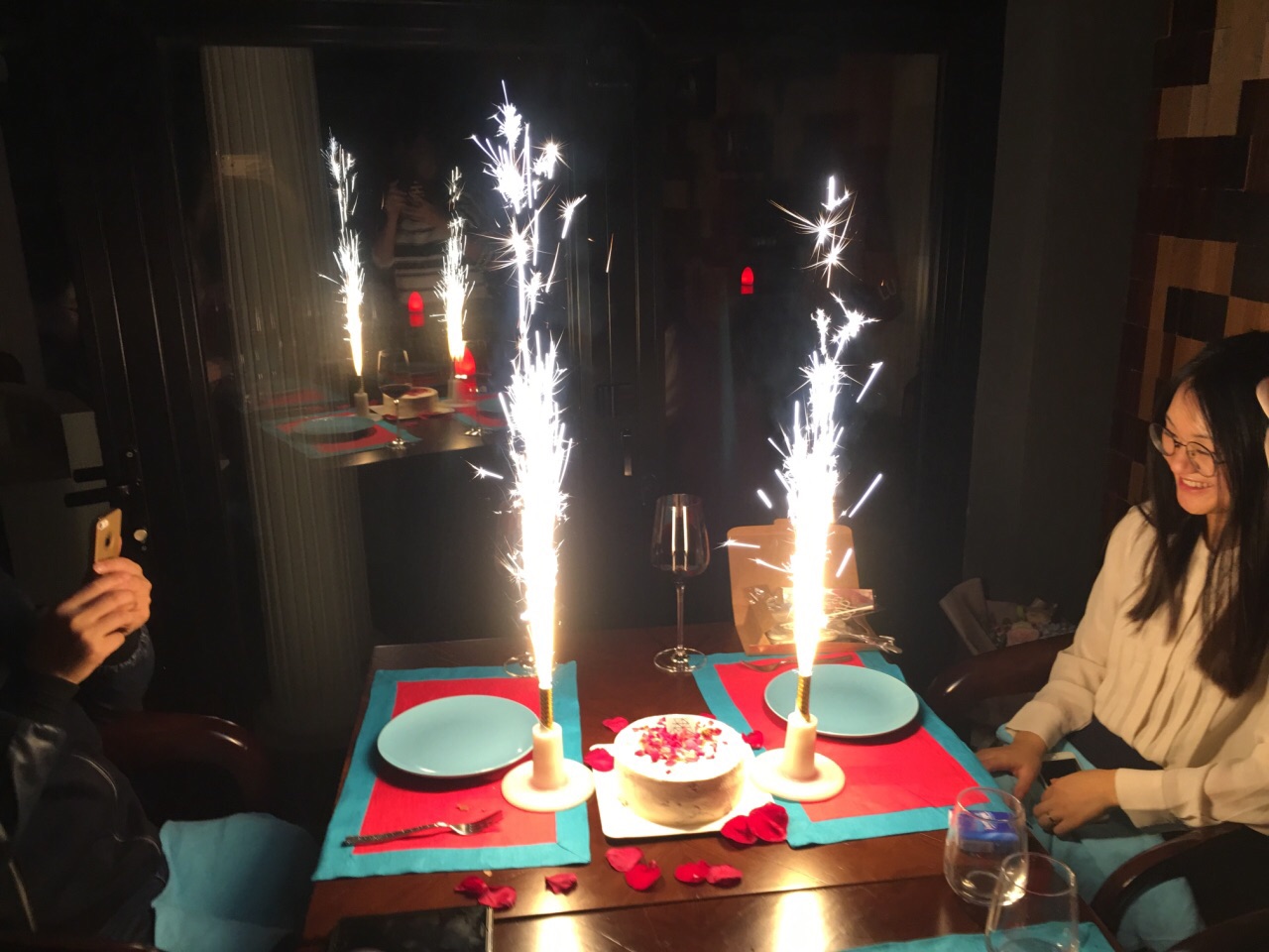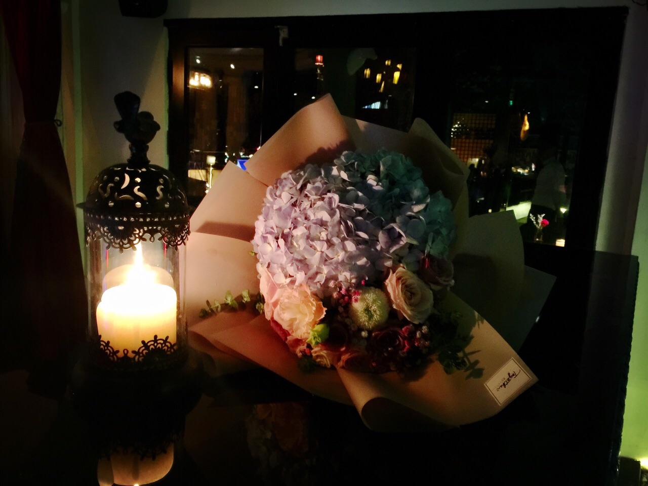 环境位子不错,在我喜欢的路上,一个小雨的夜晚为庆祝好友新婚,小伙伴们小范围聚会的地方。打电话过去提前说明了来意,于是在桌上布置了玫瑰花瓣,也为我们的蛋糕插上了冷烟花。7分熟的牛排不错,尤其配的千层土豆全场最佳。鹅肝还不错一点点腻,龙虾饭没有得到的好评,虾不够入味,饭黄油过多有点腻。。