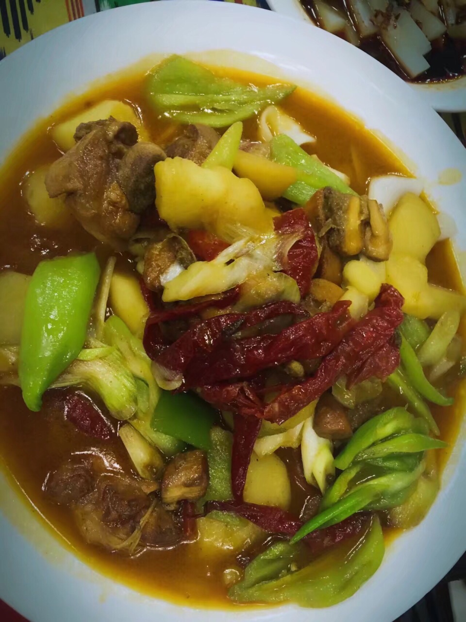 大盘鸡特别入味,都是鸡腿块,没有闲七杂八的部位,土豆炖的够面,最后加面拌着吃,太美味
