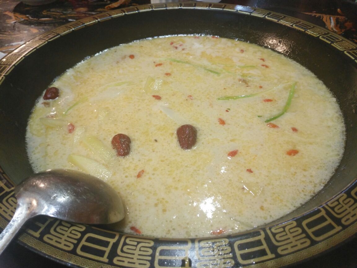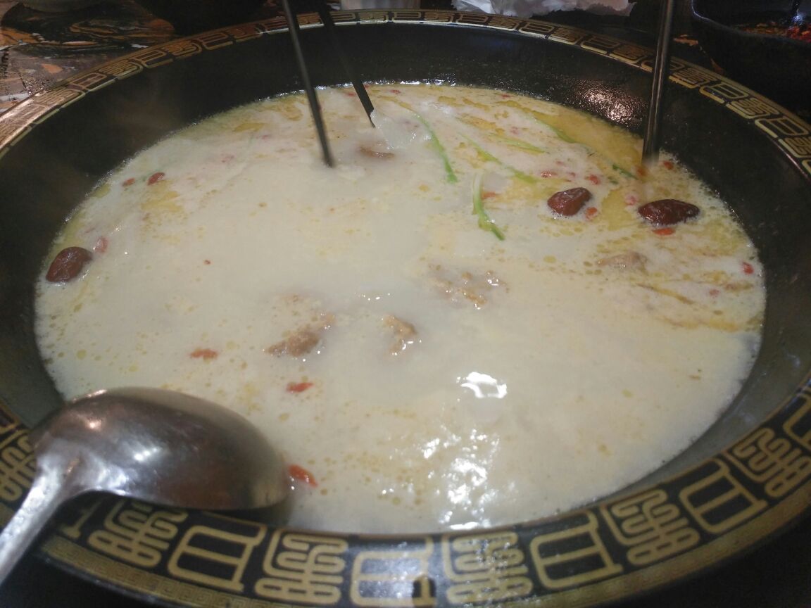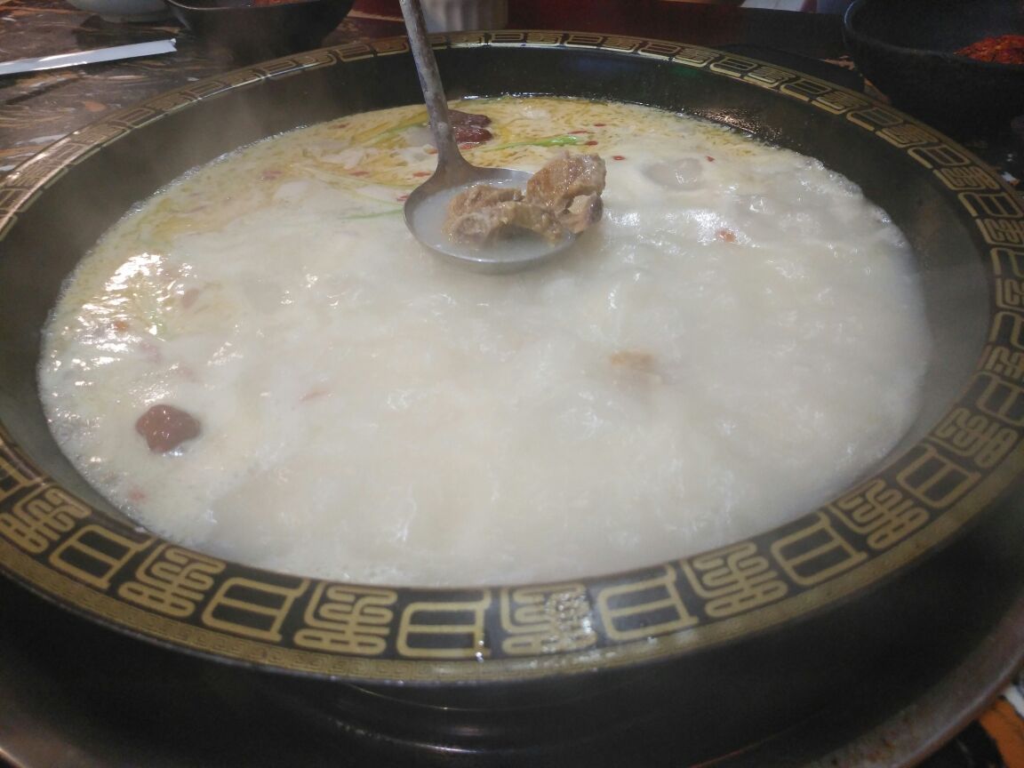 丽江野山药风腊排骨火锅位于盘州市市中心,这里分布着大量的美食。这家位置不是很好,但广告牌很显眼,顺着巷子进去就是他们家了。他们家的店面不大,大概够七八桌。主打云南腊排骨火锅,土鸡煲也是一大特色。服务一般般,上菜很慢,大夏天也没空调风扇,吃的一身汗。腊排骨是云南特色美食,发源于丽江纳西族人家。汤的确很鲜美,腊排骨也腌制刚刚正好,肉质肥美。点了一些火锅必备的食材,放入其中,增添了它的颜值,也丰富了食欲的渴望。在贵州,有个吃火锅不成文的规矩,就是要吃米饭。用腊排骨汤泡饭,味道绝了。另外,他们家的蘸料也很不错,比较有贵州本地特色。价格也不贵,人均五六十吧。