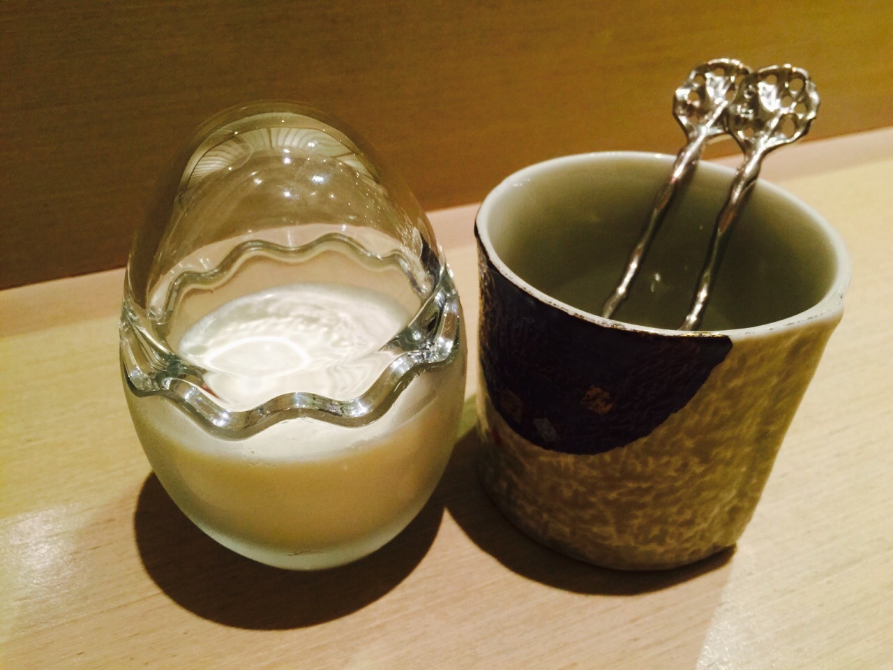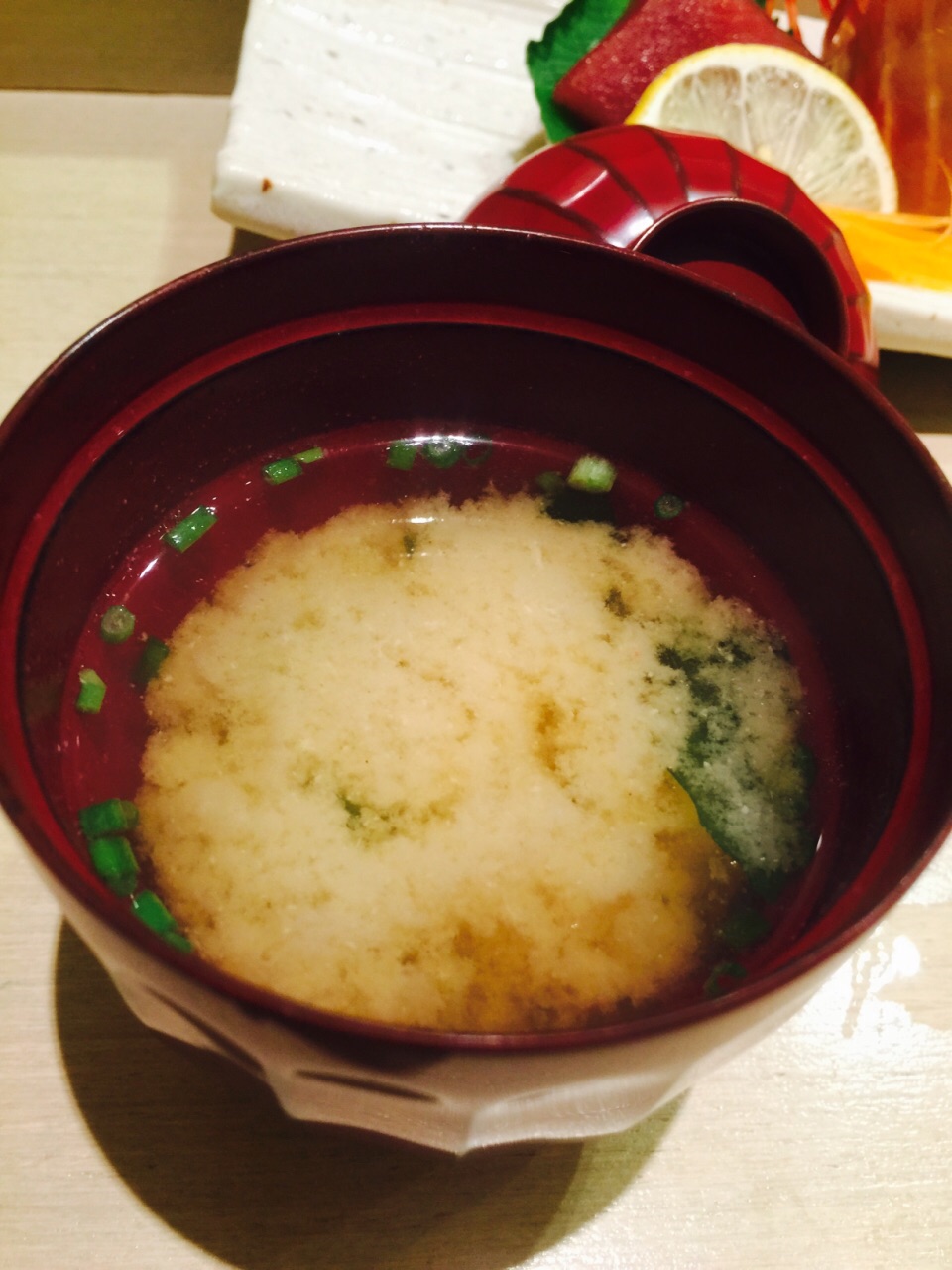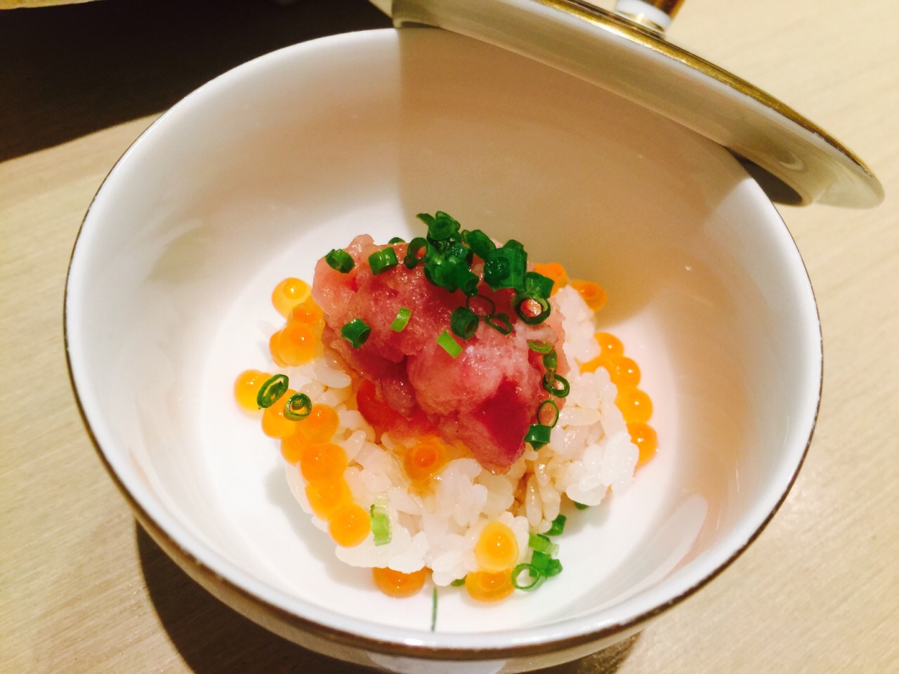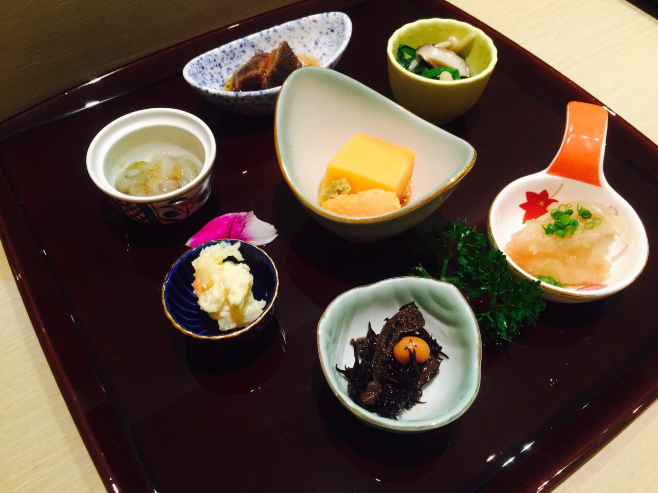 这个店铺的门噢,小是小的来,你一不注意铁定会错过,入店里面属于小而精致型,大概能坐十个人左右的吧台形式,让人想起了深夜食堂,不过人家可比深夜食堂精致的多噢~ 前菜n多样,唯独觉得海胆豆腐最美味~ 秋刀鱼松露卷吃了辣么多日料第一回吃,有创意,好吃~ 松露土瓶蒸,一个字,鲜! 寿司n多种,鲔鱼寿司,海胆寿司,金枪鱼腩寿司等等都是店内大厨现场做的,开放式的吧台兼料理台,让你吃的一览无遗~ 金枪鱼泥饭配着少许鱼籽,量是日料型的标配,可就是让你这种浅尝即止,勾住你的下次光顾~ 甜品,鸡蛋布丁,中规中矩~ 总体一份套餐580,虽有点小贵,但难得奢侈一回还是值得的,就冲着大厨亲力亲为的匠人手作,这店铺的小雅致,器皿摆盘的精致优雅,也会想着选个哪天再来点小酒~