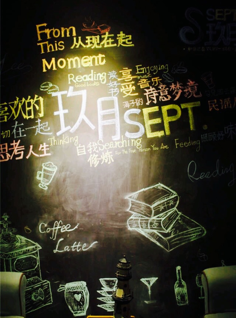 店内共分为楼上楼下三层,一楼是独立书吧结合创意小店,书吧中的图书种类相当丰富,创意小店出售各类设计感十足的各类饰品,每一件都新颖独特,让人爱不释手。二楼是玖月颇具文艺,小资情调的卡座空间,图书,胶片,雕塑等各类物品充斥在二楼各处,清爽,文艺,古色古香,优雅,似乎在这边都能寻得到踪影。三楼则是玖月咖啡馆的核心地点,点餐吧台,各类卡座,电影放映室,看电影图书区,表演舞台都集中在这边。在这边点一杯咖啡,要一份招牌意面,看一下场关于青春的电影,觉得人生的惬意享受也不过如此了。玖月咖啡馆每周一三五六都会有民谣演出,邀请各地民谣歌手进行民谣歌曲演绎,吸引了一大批文艺青年前来聆听。