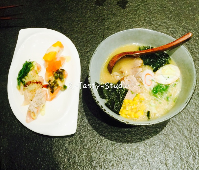 周末约着朋友想去吃海底捞来着,结果失策忘记提前拿号,所以选了这家日料店。说实话是冲着银泰城排名第七位来的,结果略有失望??。店里的环境是要给满分的,跟浓郁的日式风格,餐厅门是移门,进门有榻榻米,店里陈列这日式酒水以及装饰。??。味道确实一般般,价钱略贵,吃完以后跟朋友一致觉得没有天鹅湖万达万岁寿司性价比高??。四个人点了两份刺身还有几份寿司,总共消费308元,我感觉人均不低,并且觉得没吃到什么????。
