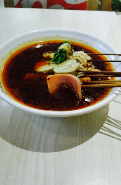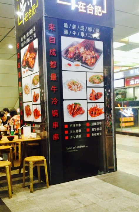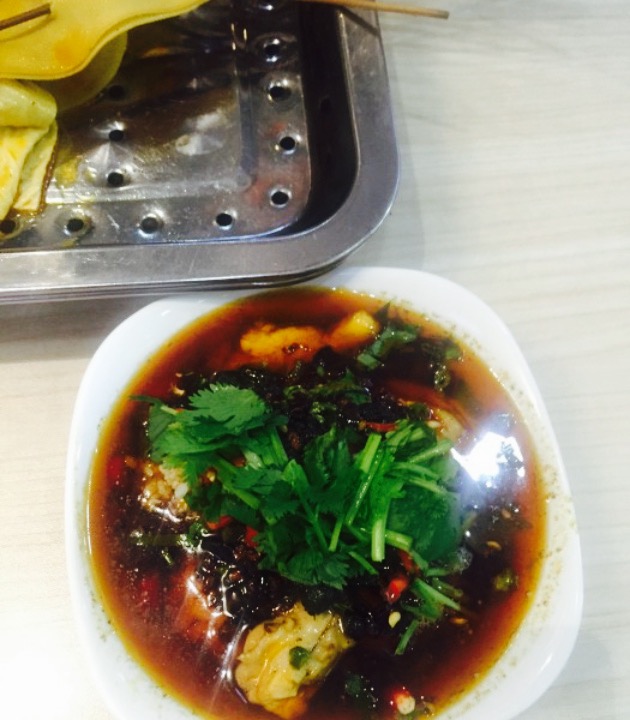 哦,逛万达的时候突然想吃点辣的又想吃串串就去了,她们家。首先他们家的位置还挺好,就在万达金街外街的2楼。大概中午11点多的时候开始营业。嗯总体来说环境还不错,中午去的时候也没什么人。服务态度还是蛮好的。价钱都在8毛钱一串。整体的味道还是不错的。她们家的菜品也很清新,鹌鹑蛋很鲜美。土豆片也不错。荤菜里面的肉串味道很不错。哦又串蘸上干辣椒粉,再配上油碟,非常好。嗯酸梅汤很好喝很好吃,里面还有颗粒。应该是自己熬制的。