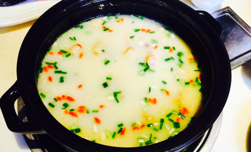 下雨天改变计划,临时决定来吃这家。到店已经中午12点多了,客人不是很多,有孩子在,服务生很热情得给了包厢。再说味道,鸡汤底真的很鲜,鲍鱼品质也很好,在门口拍照的时候看到梭子蟹39一只,就又加了只梭子蟹,梭子蟹是处理好了端上来的,切两半后还在动,确实是蛮新鲜的。炭步芋头很糯,煲仔饭很香,爸爸一口气吃了四小碗,最后不得不提一下他家的抄手,用老公的话说,简直满分。