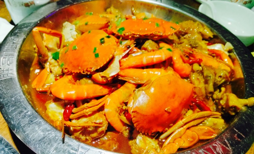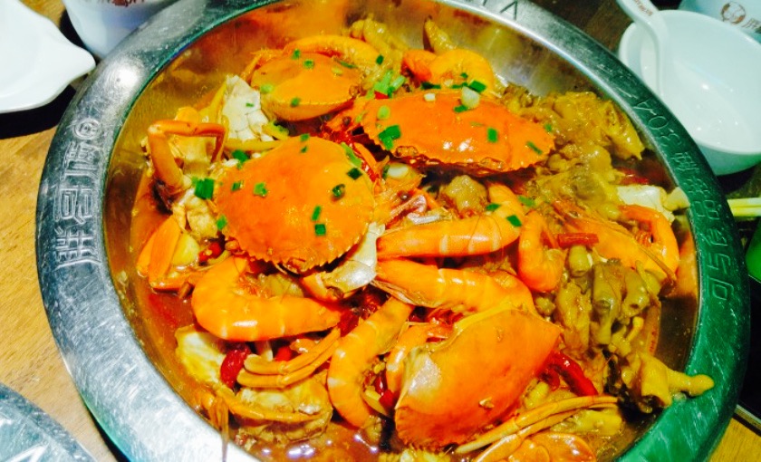 来排过好多次队,最终都等不及去别的地方吃了。昨天6点下班开始网上排队,7点40到地方还要等一桌,结果等到快8点,终于进来了。先说环境,人是真多,座位安排也有点挤,装修应该还可以,但没有时间顾得上环境了。再说服务,去之前看网友攻略说服务一般,但到那感觉还行。服务生还挺周到的,没有不让拍照,也没有催着吃完赶快走。就是筷子非得给不同颜色凑成一双是为啥。肉蟹煲美味,我不懂螃蟹,但挺卫生的,鲜,也够味。要的中辣的,味很足,吃到后半场有点略辣。鸡爪真是一绝,炖的很烂很可口,基本不用啃,超美味。加的虾味道一般。年糕和洋芋也爽口,但土豆太多,又太烂,最后有些辣也吃不下了。饮品味道真心一般,那个一次性奶瓶的,两个朋友点了都没喝完。我点的苏打水,满满一杯冰啊,就点西瓜汁的感觉还行。挺实惠的一家店☺,四人花了223,其中饮料都65了。难怪这么多人,有时间会再去的,希望锦艺点的赶紧开。