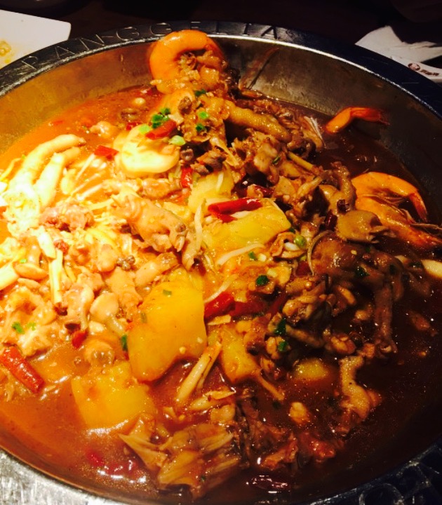 早就听说这家店,每次到大卫城吃饭都见到很多人在排队,正好这次早饭吃的晚下午4点过来,说是4点半开餐先让排号。大约是4点40左右开餐的,没怎么等直接叫号就进来了。说说菜品,第一次吃,要的微辣的招聘肉蟹煲,蔬菜沙拉,两碗米饭。里边配菜是鸡爪,洋芋,嫩豆腐和年糕。鸡爪特别烂,味道全进去了,很不错,豆腐和年糕也好,洋芋味道是很好就是太大块了。其实煲的汤汁更适合下面条/烩面,不晓得是否因为缺少火炉的关系所以没有这个选项。总体感觉适合女孩子吃,因为微辣的偏甜口,男士吃起来会稍嫌腻了。男士推荐中辣或者加牛蛙或者仔骨煲。哦对了,蔬菜沙拉很不错。饮料,我们点的来自星星的他和来自星星的她,我更喜欢来自星星的他,女士的她对于我来说太甜了。走的时候大概6点左右,外边已经排的满满都是人,据说得等一个钟头左右了。