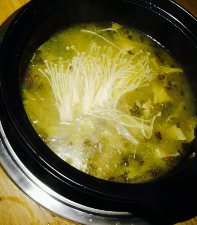 ...酸萝卜片和粉条,微辣的辣度正好,本人觉得口感比九味好,一锅满满当当压根吃不完,剩下一半就打包了