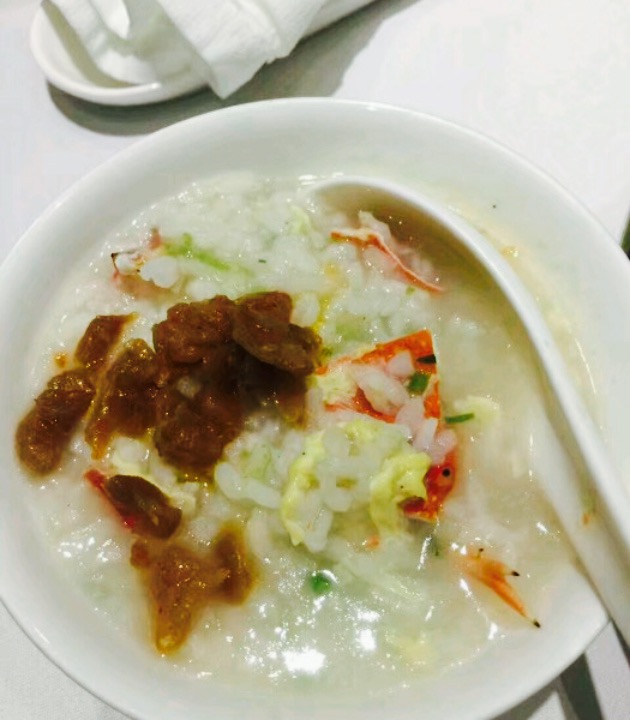 这就是传说中的无锡第一贵的火锅。在阳春巷里,有些不好找,金沙后门对门。包厢很小,里面好多镜子,差点以为是锅镜。坐下,就有服务员上水果,随后就问要不要吃豆腐花,豆腐花应该是10元一碗,里边有些油筛子碎粒,因此吃着香香的,可以有点咸。火锅的佐料自己选取,放进调料小盘里,可是我似乎最喜欢他家的醋料。黑貂鱼肉质好吃。帝王蟹不愧是招牌,点了一个5,3斤的蟹,服务员分拆的很容易吃。价格的确很贵,但感觉还算值得吧。6人吃了4000多,只能难得吃吃。