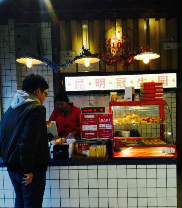 冠生园是昆明的老字号糕点店了,以前都是做一些传统的糕点,而且比较注重中秋月饼的制作。现在随着人们生活习惯的改变,月饼的销量逐渐走低,因此也开始向新颖的烘培方面发展了。这家店就是一家现场烘培店,保存了一些传统的优势产品,也开始涉及西点的制作。本人还是喜欢老口味的糕点,一种回忆里年少的印象。