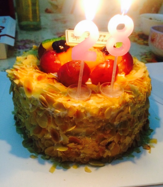 原谅我感觉一点不入味,原因是上面的杏仁片全部皮掉了,这次老公过生日换成手指蛋糕还不错,没让我大失所望