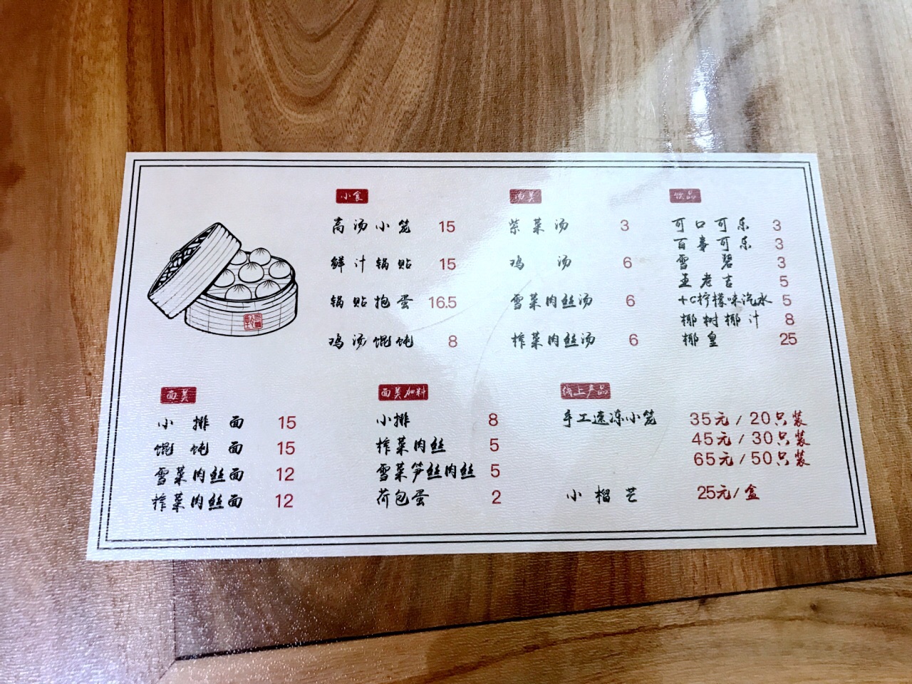 看朋友圈,得知南苑饭店那里开了一家挺有范儿的包子铺,小巷子里,确实不好找 原木色,清新怀旧,最近的早餐店几乎都走这样的风格,桌椅的摆放、餐具、灯饰,这些小细节可以看出,店家还是用心设计过的 鸡汤馄饨,馄饨皮有点老底子的意思,馄饨汤很鲜美,不错 高汤小笼,心急,第一口被烫到了,小笼包算是海派做法么,不太懂,肉还可以,汤汁不油,口味偏甜,个头比较小,估计男生吃不饱,小笼包要趁热吃,凉了皮会发硬,不过那次似乎店家有点着急,小笼包蒸的时间太短了,有几个小笼褶子里还是面粉,同样,肉馅也是差一口气