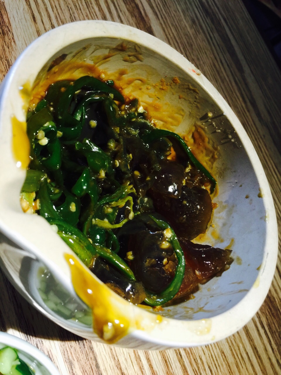 这家店真的是去吃的时间有点长啦,记得是和小伙伴相约去虹桥龙湖天街看小黄鸭,蓝后在那里吃了晚饭~ 只记得当时店门口进去的时候昏暗幽静,只有那闪着亮光的凤凰转着晕圈,越往里走越宽阔有型,店内的格局装饰显得古朴典雅,牌匾字体苍劲有力,通往更深处时还有圆形拱门,连有些餐位处都有绿树掩映(虽是假的),钩栏雕花,让人仿佛置身于闲庭小院中,悠然自得处之~ 和小伙伴一起在这悠闲的环境中吃下了不少好东西~ 餐前的小食酸豆角,花生,黄瓜都蛮爽口好吃~ #擂辣椒皮蛋#真的有被雷到,因为上桌时就是个中药捣药的木头棍,吃之前需将辣椒个皮蛋充分捣匀捣入味了,才好吃,真的是属于一款越吃越过瘾,虽然辣的鼻涕直流但是还是好吃,特别的下饭~ 说到饭,他家的饭也蛮特别的,应该是蒸出来的那种,每一份都是小小瓦罐材质的一小碗,里面星星点点着玉米若干,米饭的香味和饱满的颗粒,让人能再来一碗~ #大盆有机花菜#和擂辣椒皮蛋相比没有辣的等级了,虽辣但已经让我们觉得没有什么负担了,so so的~ #凤凰酸汤鱼#好大一份,和小伙伴两个女生要吃完还是蛮吃力的,搞到后面,小伙伴一直不停的给我的碗里盛汤和鱼,汤底酸爽开胃,鱼片鲜嫩可口,我是真的吃了好几碗,到最后扶墙出~ 喜欢吃辣的亲,绝对可以一试,真心辣到你流泪流鼻涕~