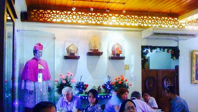 我对这家餐厅的第一印象就是这里的装修太独特了,墙壁上装饰着充满神圣氛围的画像和独具特色的纪念品。当然了,这里的食物也是极美味的,汤的口感棒极了,烤鳎鱼吃起来也很鲜美,还有香软可口的春卷。每一道菜都让人很惊喜,真的是一次很棒的用餐体验。