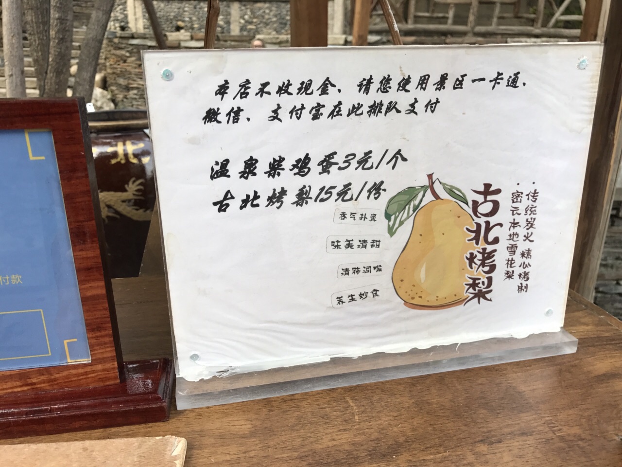 就在龙凤泡脚池的边儿上,烤梨装在一个大把儿的搪瓷缸子里,有人买了就端着直接坐在那里开始泡脚,边吃边泡。 我是想起来若干年前在长白山脚下吃的温泉煮鸡蛋,非常美味,所以要了几个这里的煮蛋,看看如何。 鸡蛋不大,放在一个mini纸杯里,很可爱,刚刚从大缸里捞出来,剥着皮儿都烫手。很深色的蛋黄,像土鸡蛋,可惜煮得稍微有点儿老,如果再煮短点时间,有溏心儿就完美了。