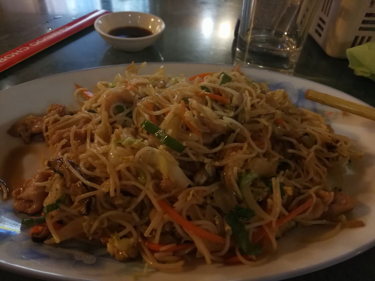 此次欧洲之行第一顿中餐,短发的姑娘很友好,长发的大姐对人爱理不理。店里吃饭的竟然外国人比华人多,意外。炒米粉很好吃,尖椒炒牛肉实在太辣了,虽然老板友情提示过我这道菜辣,但是我显然轻敌了,自己点的辣,辣死也要努力吃完