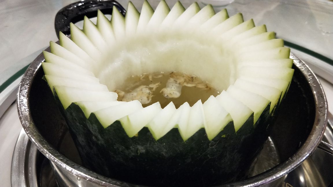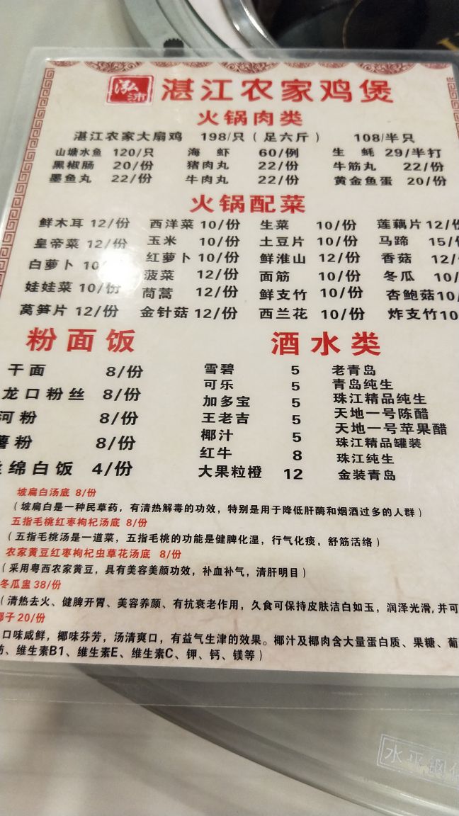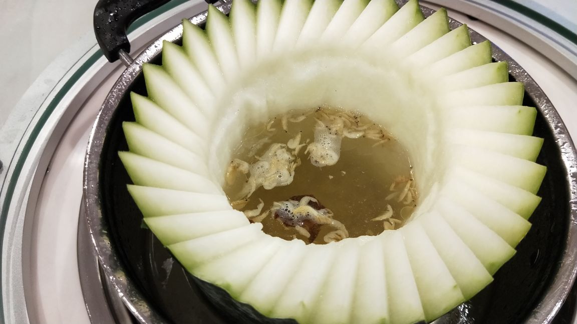伯父生日,就来了这家店吃,因为就在家的旁边,走下来就五分钟不到的距离,而且全家人都比较喜欢吃鸡,这家湛江鸡农家鸡煲环境十分不错,有大的桌子,坐着就十分的宽敞舒畅。 原本以为就是普通的打边炉,原来这边用的是冬瓜盅的形式,冬瓜非常适合秋天进补。 鸡的个头还是蛮大的,而且性价比相当的高,在点了几碟肉丸子,这边的牛肉丸,非常的弹牙,所以后来又加了一盘。 蒜香骨也是十分的好吃,入味,也是弄得够脆,新鲜炸起来的。 湛江鸡就很鲜,放下去冬瓜煮的很快就熟,酱料也不错,蔬菜靠谱不老。 吃完鸡之后还可以帮这边的冬瓜切开来,也是可以当做一道菜的,反正你家人都能吃饱,而且价钱很便宜。 服务态度也相当不错,这边喝的是花茶,就在地铁站出来很近的地方,下次还在来。