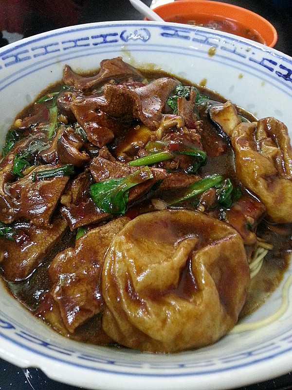 收藏很久的一间人气面店! 中午不下雨,也不是很热,决定去拔草! 公交过去也算方便,之前吃宝泰这边来过几次,熟门熟路了! 店里生意不错!浇头选择不少! 【香菇面筋面+猪肝浇头】酱油太多,猪肝很香,但吃到后面也变成了吃酱油面,相对配的咸菜汤到显得清口很多! 【辣肉面+大肠浇头】酱油太多,吃到后面很咸,辣肉都被酱油淹没吃在嘴里全是酱油味吃不出辣肉味,大肠洗的很干净,没有腥味,口感也不错!