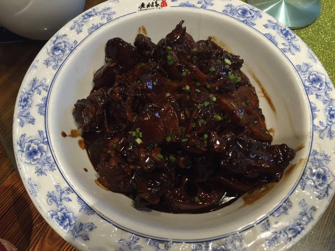 武汉排名挺高的餐厅 名副其实 环境优 服务可 菜品量大 关键非常实惠 算是第一天的正餐 民族大道店离光谷广场差不多十分钟路程 五点过去 店里还只有零星2桌 到饭点果然排队的节奏 古色古香的环境 桌椅 卷帘式的纱窗 营造了一份优雅的氛围 茶水免费 一入座 就帮你添好的 不过他们的上菜顺序有点~居然先上了点心 冷菜最后上~ 『泥藕焖老鸭』¥48 看似浓油赤酱哦 大块的糯藕 大块的入味老鸭 以葱花点缀 吃口不差 『乡村螺蛳鸡』¥47 意外喜欢的一道菜 鸡肉油汆过切成小粒 颗颗拨壳的螺蛳在其中 花椒更多了 鸡肉和螺蛳吃口老 调味香吧 停不下口 『珍珠南瓜元』¥16 我还挺钟意这道点心的 甜糯的南瓜搭配鲜嫩的肉球 用糯米包围 鲜中带甜 粉粉的 还挺好吃的 『老村长私募鸭』¥34 半份 第一口被辣到了 很刺激~可能是没准备好湖北菜的辣 感觉和花椒一起腌制久了 鸭肉的吃口酥嫩带点麻 『香脆糍粑』¥16 是一整块撒了花生粉的圆形糍粑 事先帮你切好 拿着吃就可 味道香甜糯口 『山药炖牛腩』¥33 牛腩量不多 山药切成片状 红烧的 汤水很多 解辣好帮手 八个人 八道菜 260元 人均真的是实惠 去武汉 推荐店家之一