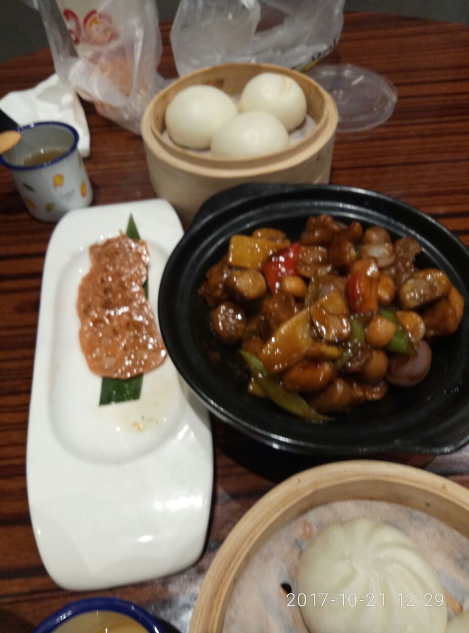 新开业的特色怀旧主题餐厅,环境很有特色,都是老物件,放的歌曲也都是金曲老歌,菜品的话很常规,感觉一般,没点太多,可能跟小伙伴都是90后,对校门口的圆筒那个都没印象。三杯栗子鸡还不错,奶黄包和叉烧包中规中矩,桂花藕量很小。