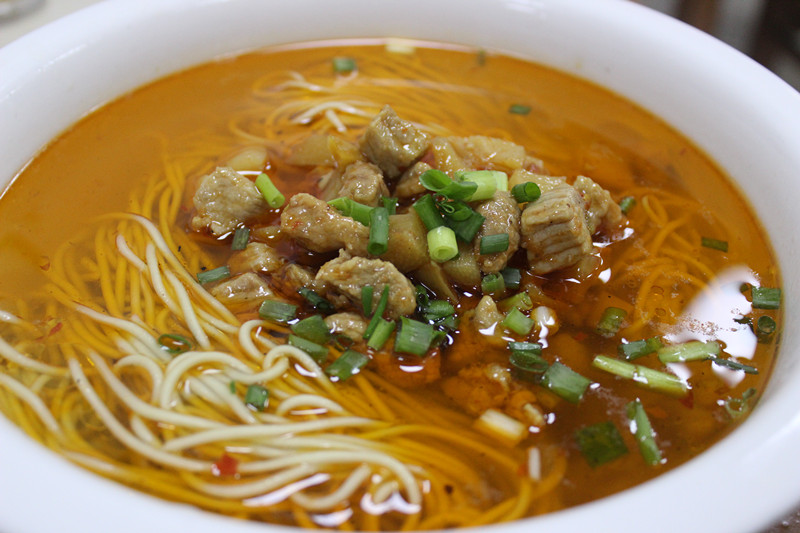 【笋丁辣肉面】加了笋丁提升了辣肉的口感,微辣肉香,面条还可以在硬一些