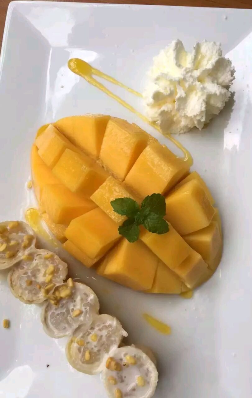 喜欢吃甜品的可以去,女生大多都会喜欢去吃的。 不过我不知道这家算不算网红店了,清迈的网红店实在是太多了,芒果都是很甜肉厚核很薄的。 沙冰里面也能吃的到芒果果肉的,不过泰国的水果大多都挺不错的,还有边上那个奶油。