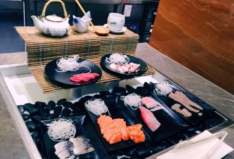 开在五星级餐厅内的自助餐厅,环境和服务自然还是不错的,消费价格小贵,甜品是哈根达斯,品种比较多大约10多个吧 ;生鲜的三文鱼、金枪鱼味道都不错;小海鲜有海虾、螃蟹、生蚝、青口等选择;寿司品种不多,口味还行;牛排煎得火候还不错,而且肉质也挺上层的。