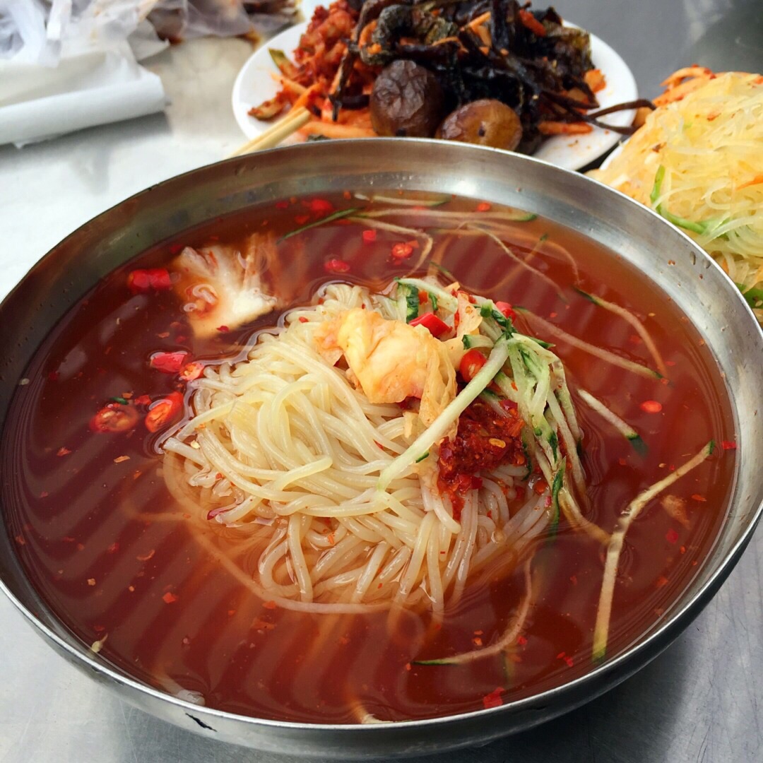 冷面绝对算得上抚顺的特色美食之一, 抚顺的冷面口味自成一体,每家又都有自己的特色,每次回来都能找一家没吃过的冷面馆尝尝,这家明峰冷面9块钱一碗酸甜适口凉爽开胃,汤里居然还放小米辣-_-#标配是10元自助盛盘的拌花菜,差不多每桌都是这样一套,堆多高店家都不管!吃不了居然还可以打包带走!太任性了!这样真的不赔钱嘛?!花菜里的酱小土豆和地瓜梗特别好呲!临走再打包一条店里的辣鱼,圆满了^_^