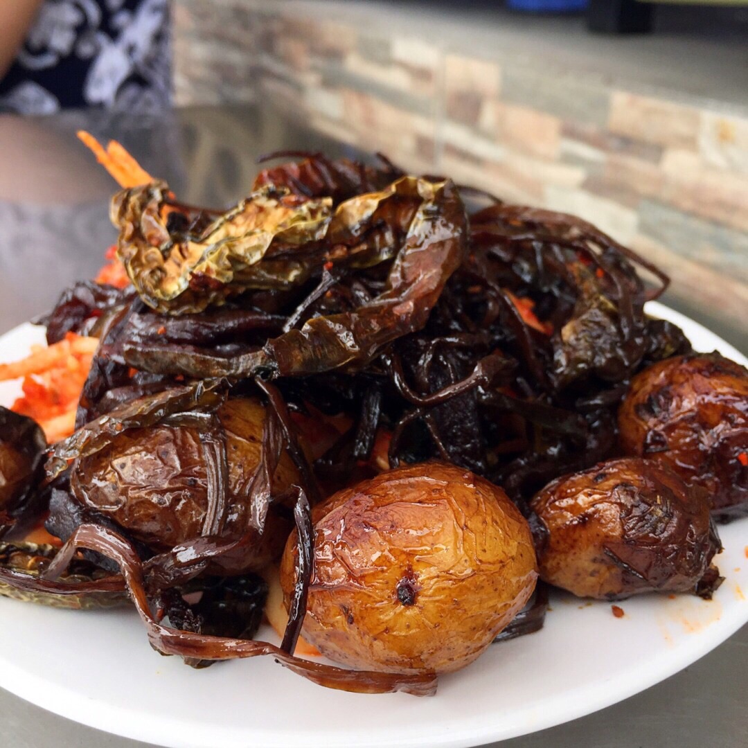 吃不了居然还可以打包带走!临走再打包一条店里的辣鱼,圆满了^_^。花菜里的酱小土豆和地瓜梗特别好呲