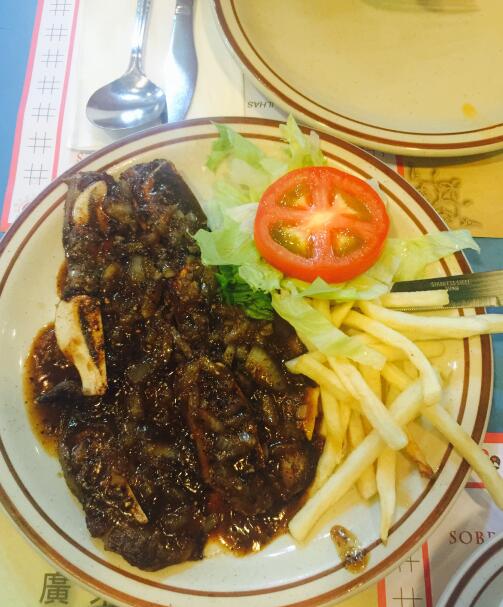 性价比很低,就普通一个餐馆,还标价很贵,我由于网络问题开补了点评,只依稀记得这家,进去了,结果出事了,那个褒鸡是没有的,马介休球很少分量,番茄意粉不好吃,稀得像水,助手还凑合,反正没下次,390元港币,不划算,还哦不如去吃小吃,我们对公鸡的印象用一句话来概括就是:各种咖喱烩折箩(下水) 点了三个菜、一个汤、一例份马介休烩饭、一瓶葡萄酒。 猪耳朵,无滋无味,勉强能吃,但味道也是奇怪。 马介休汤30mop,可能是因为这个汤价格便宜的原因至少还算是新鲜的,就是土豆浓汤加了一些蔬菜叶,份量就是一般西餐一人份浓汤的量。 那个羊肉,一百多葡币,超级难吃,很酸,口感很重,羊肉特别膻,而且羊肉很老,几个法包泡在里面吃到最后就有点恶心了,应该是用各种奇怪的味道去遮盖羊肉的腥膻味道,主要原因就是羊肉不够新鲜。