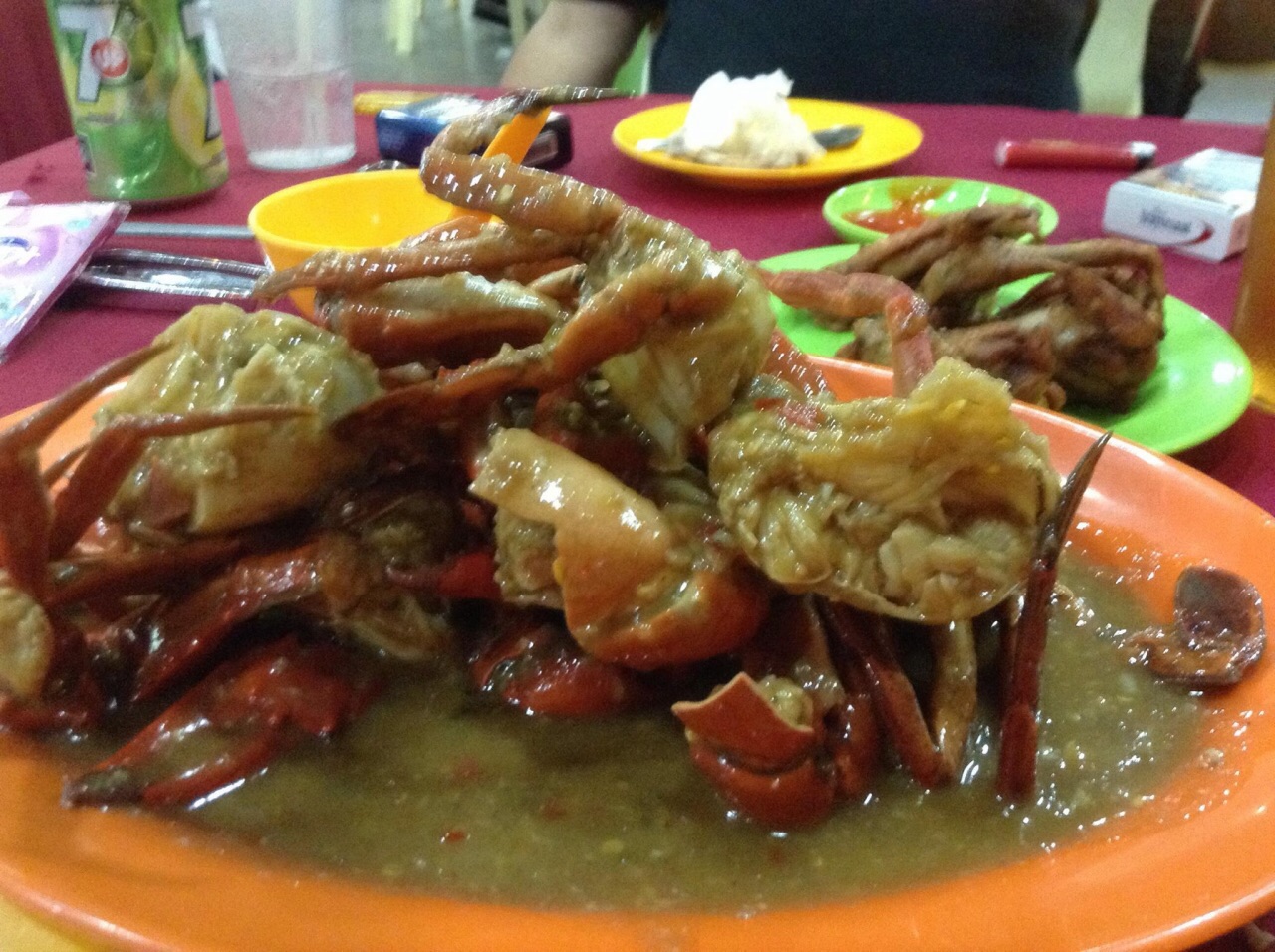 ...得品尝的,新鲜肥大的青蟹,肉质清甜可口,加上沙爹,炒饭和其他海鲜令我们在这里享用了美味海鲜大餐