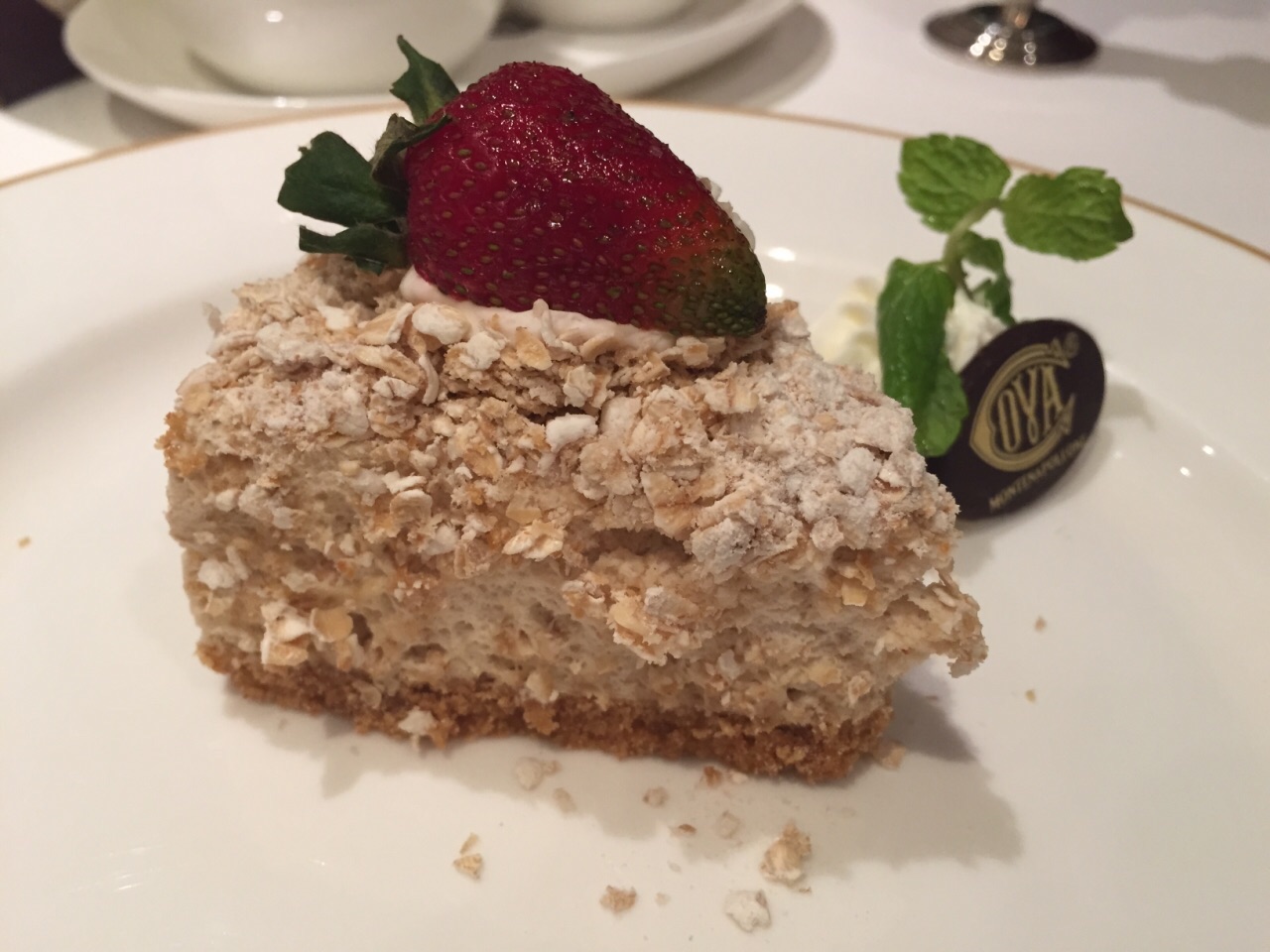 久负盛名的高级巧克力品牌COVA创立于1817年 200年的历史积淀 让它远渡重洋 飘到了上海 心仪已久的蛋糕 长条状的餐厅 进去便看到小蛋糕的本尊 再往里点 就是堂吃的地儿 幸运的是 想吃的两款蛋糕都有 不过没有小块装 只剩切片的了 服务员也一个劲儿的说 切片好 切片比小块的大许多呢 拿切片的吧...巴拉巴拉... 然后我才发现 原来小块(圆形状)45元 切片85元 差价挺大的 实际大小没差多少 没打包 选了堂吃 服务员还挺热心的帮忙拉椅子 随即送上茶水单 要求提供免费柠檬水的时候 脸色突然难看 但并没说不可以 也就是说 所谓的抵消应该没了 稍等片刻 精美小蛋糕登场 啦啦啦 『芒果蛋糕』¥85 大块大块的鲜芒啊 轻柔细腻的奶油 湿润软绵的蛋糕 三者融合极其完美 大爱 『燕麦蛋糕』¥85 标配奶油巧克力 胚底松脆 被燕麦包裹严实的蛋糕 只一个字形容”干“ 不知道为嘛很多人推崇 我是无爱的 点缀的草莓居然也是烂的 醉了