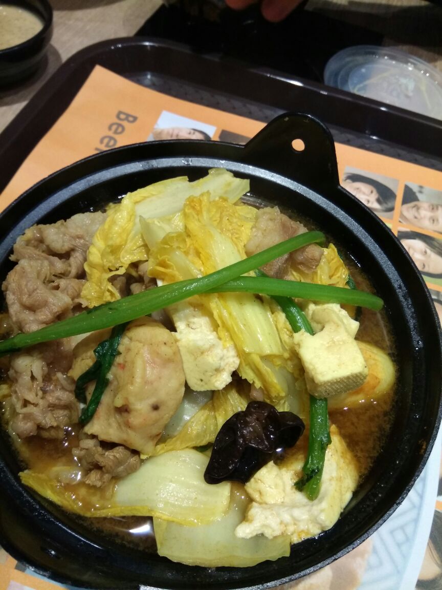 新店开业的时候去的,折扣力度很大,五折小火锅,可惜锅不好用,扰了兴致,不过店长送了饮料。肥牛,菜,寿喜烧口味的锅底,还有焙煎芝麻酱做蘸料,感觉不像快餐了。加了鸡肉饭肥牛饭,上菜很快。丸子品质很好,蔬菜也新鲜。