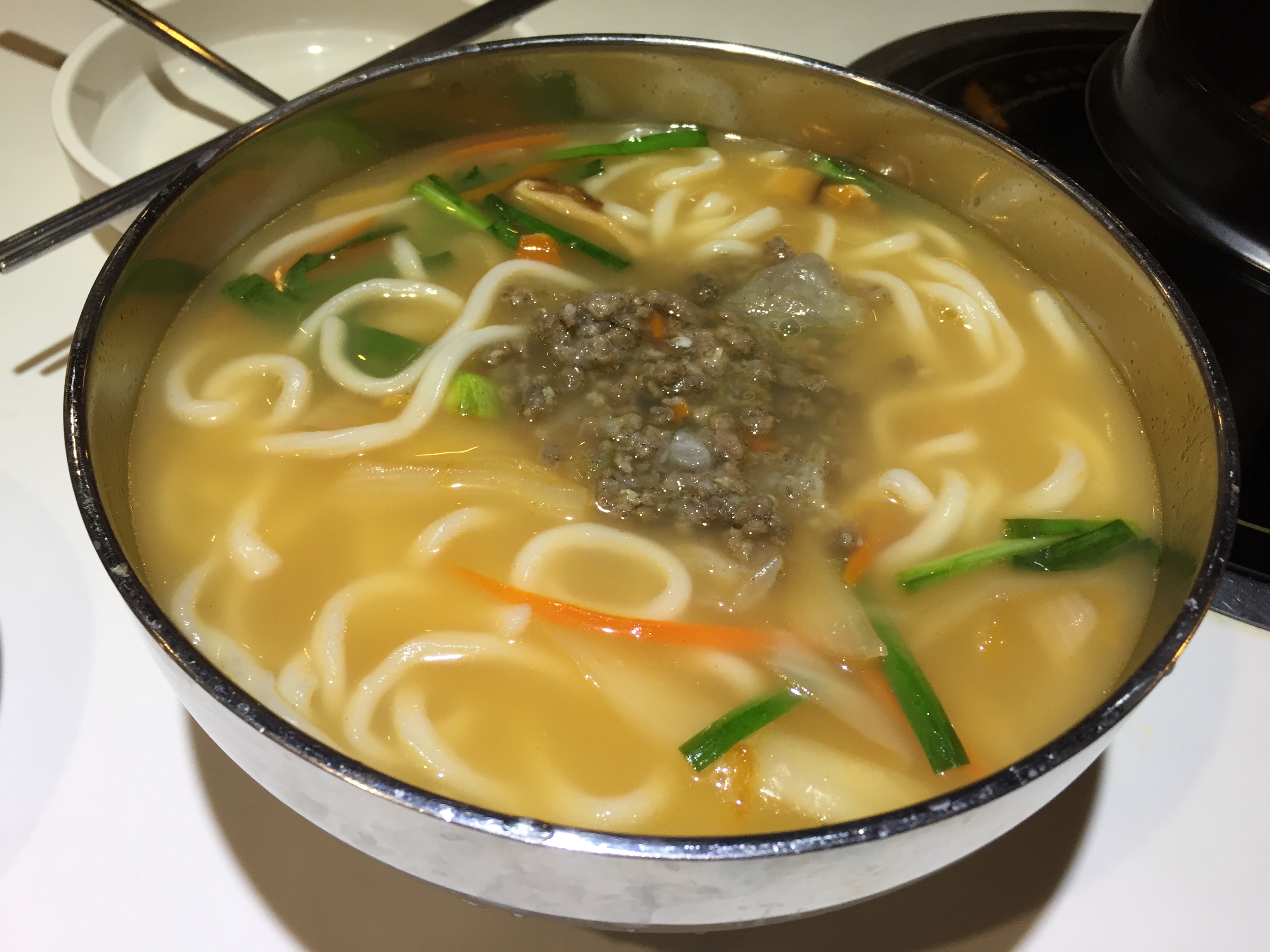 有点烂烂的口感 洋葱、韭菜、胡萝卜丝、香菇为辅 只有那口汤是喜欢的 咸鲜略带泡菜的香 『明洞花...