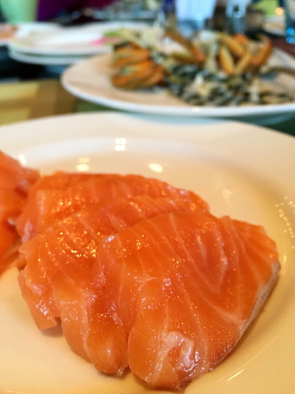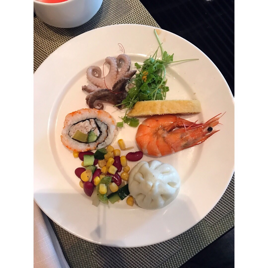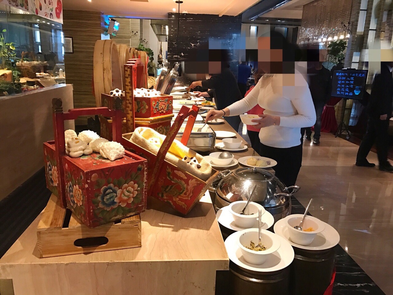 周末过来最好提前定位,省去排队等候的时间;客人还是挺多的^_^ 食物跟上次来没有什么大的变化(见图片),现在的海鲜区只有小️、大虾,扇贝、蚬子和巴蛸,倒是都很新鲜;面食区都是半成品味道一般都不推荐,尤其不要点面条!想吃现做韭菜盒子要等30分钟以上;烤肉区是最受欢迎的!这次全家出动,老人倒是对这里很满意,宝宝也有合适的宝宝餐椅,大堂卫生间里有母婴室;就是吃个环境和服务吧,相对于我买的餐券120多的价格这里还是性价比不错哒(现在餐券有买送活动) 周末有驻唱歌手,2位美女,把李健的歌唱的别有一番风味^_^