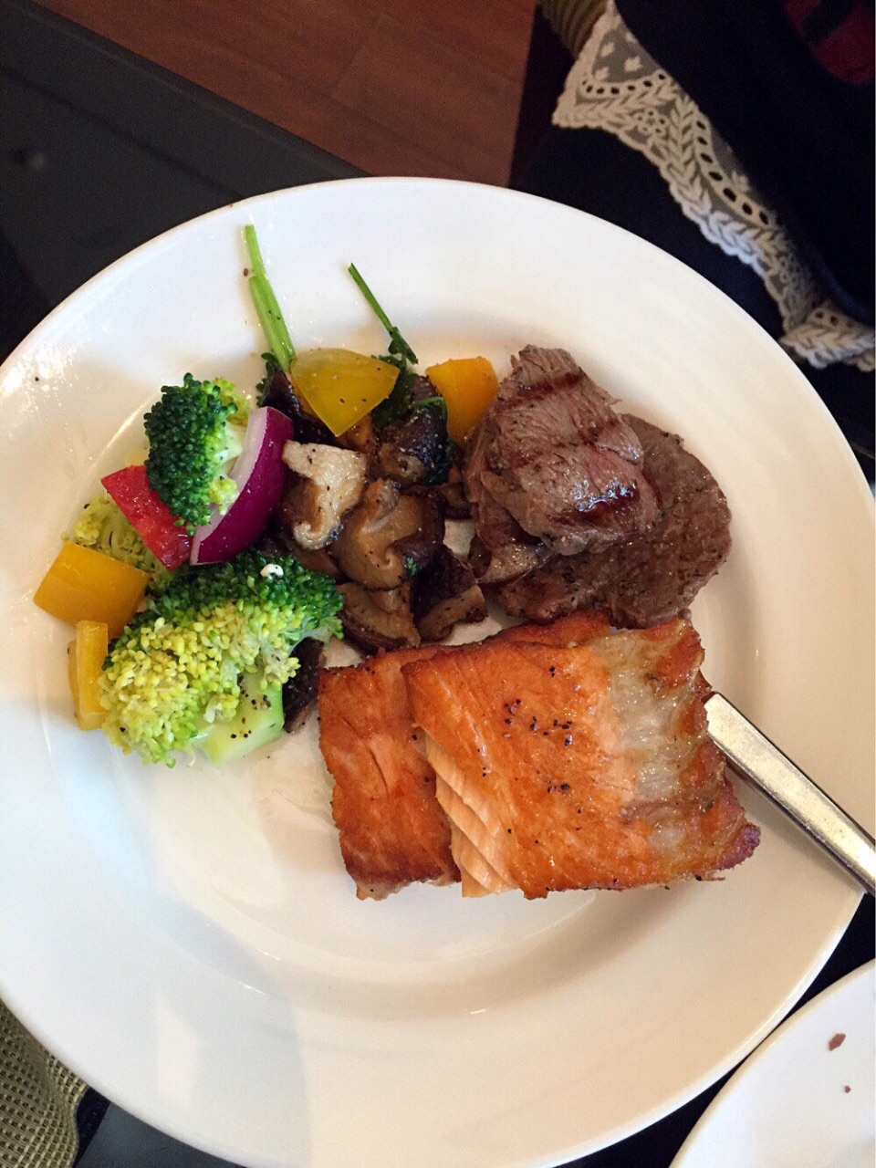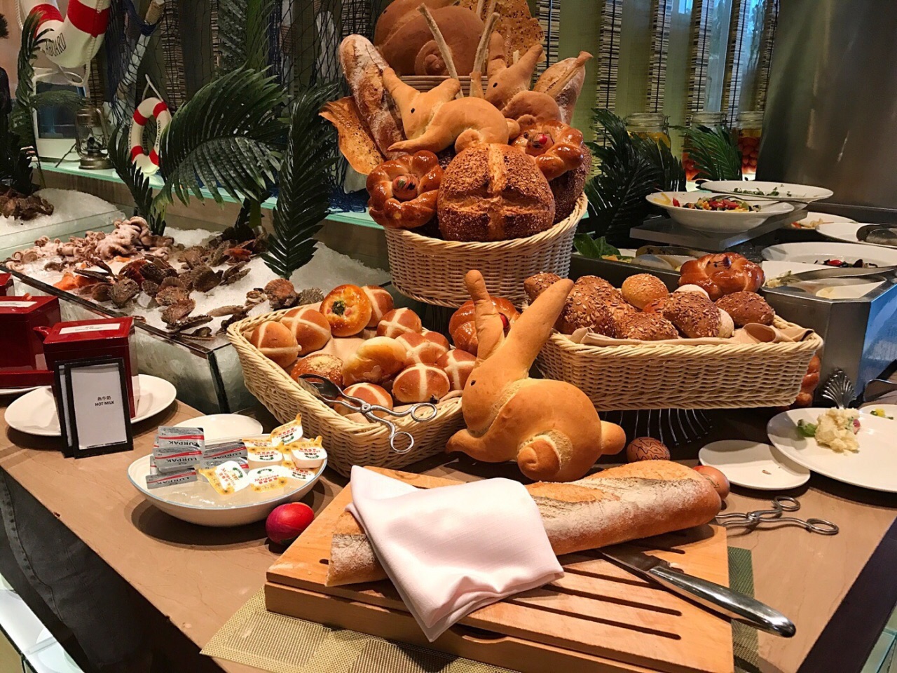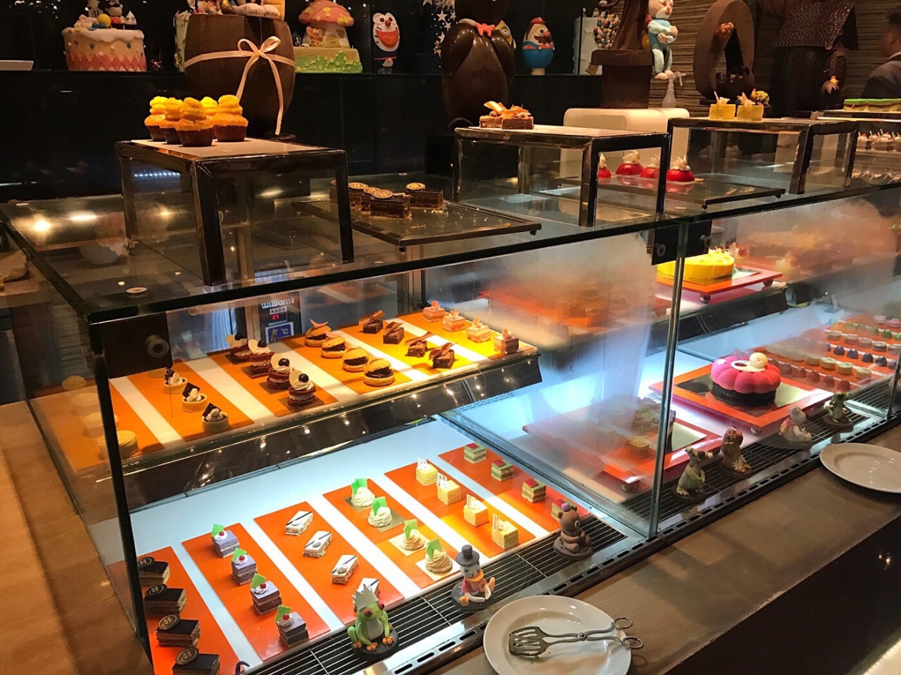 周末过来最好提前定位,省去排队等候的时间;客人还是挺多的^_^ 食物跟上次来没有什么大的变化(见图片),现在的海鲜区只有小️、大虾,扇贝、蚬子和巴蛸,倒是都很新鲜;面食区都是半成品味道一般都不推荐,尤其不要点面条!想吃现做韭菜盒子要等30分钟以上;烤肉区是最受欢迎的!这次全家出动,老人倒是对这里很满意,宝宝也有合适的宝宝餐椅,大堂卫生间里有母婴室;就是吃个环境和服务吧,相对于我买的餐券120多的价格这里还是性价比不错哒(现在餐券有买送活动) 周末有驻唱歌手,2位美女,把李健的歌唱的别有一番风味^_^