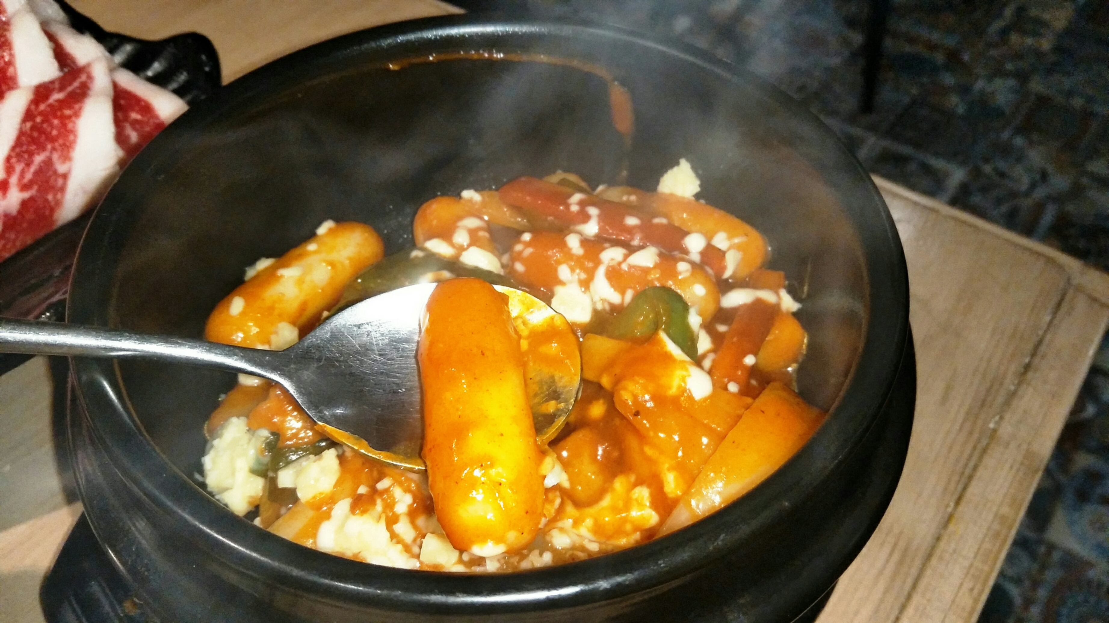 芝士年糕超级好吃,不是平常见到的用芝士粉软化后炒的普通年糕,而是年糕芯本身就是芝士的那种