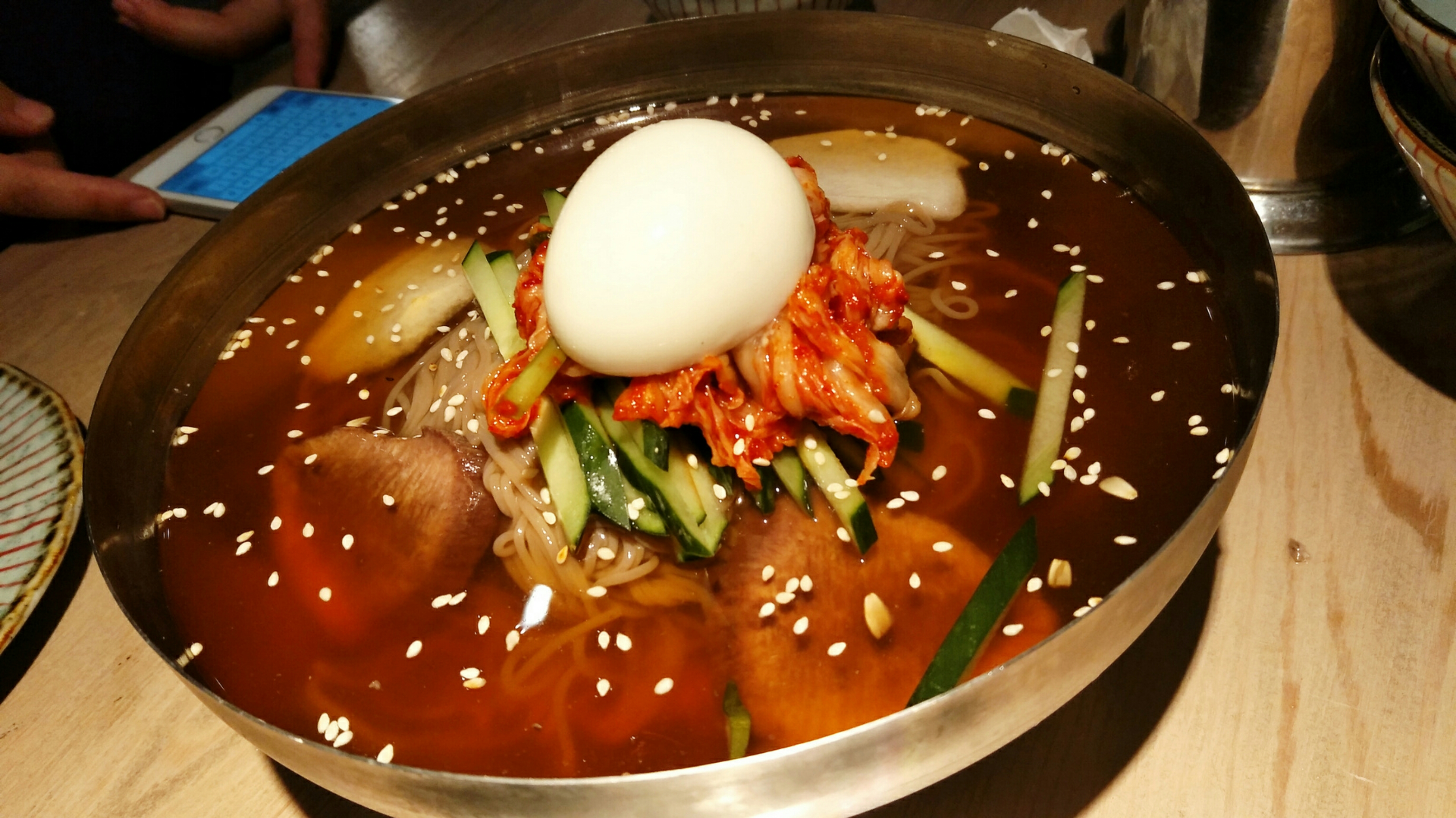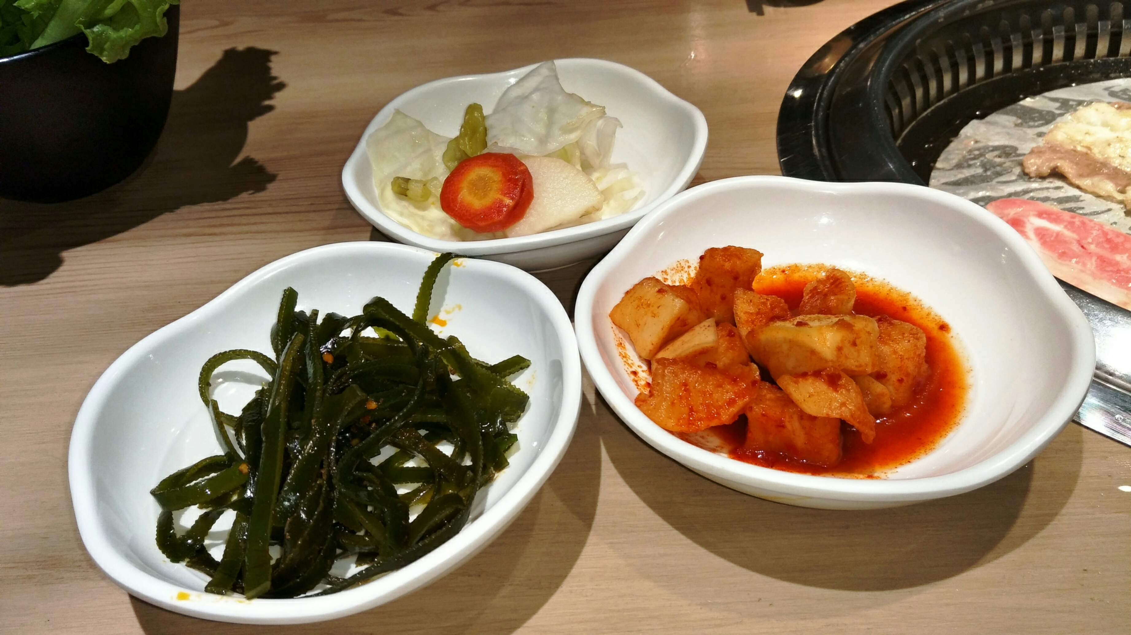 餐厅名称:咕噜一家 餐厅地址:四川成都市迎宾大道123号(西锦城商业楼) 招牌菜介绍:芝士年糕、各色烤肉 人均消费:60元 餐厅简评: 这是一家小巧可爱的韩式烤肉店,门面不大,地理位置优越,就在于迎宾大道和金耀路交界的西锦城商业楼的一楼。去的时候已经接近晚上十点了,周围已经没有什么可以不辣又能填饱肚子的食肆营业,抱着忐忑的心情推门进去,幸好还营业。 餐厅的装修走的是工厂冷淡风格,但又不失淡淡的书卷气,让人感觉很舒服。 坐下后,服务生笑眯眯地拿出点单纸,看了一下有各种韩式餐品,价格都很公道的样子。餐品上来的时候吓了一大跳,很大一份,完全超乎想象,真的很划算!!!餐前小菜虽然款式不多,但都是经典,而且分量足够两三人吃了!芝士年糕超级好吃,不是平常见到的用芝士粉软化后炒的普通年糕,而是年糕芯本身就是芝士的那种!年糕的软糯与芝士的奶香相得益彰!猪牛羊三款五花肉烤起来各有各的肉香!冷面超级大碗,一个人吃不完的! 其他配套:门外马路可以提供足够停车位;可以用支付宝或者微信支付;提供免费WIFI服务