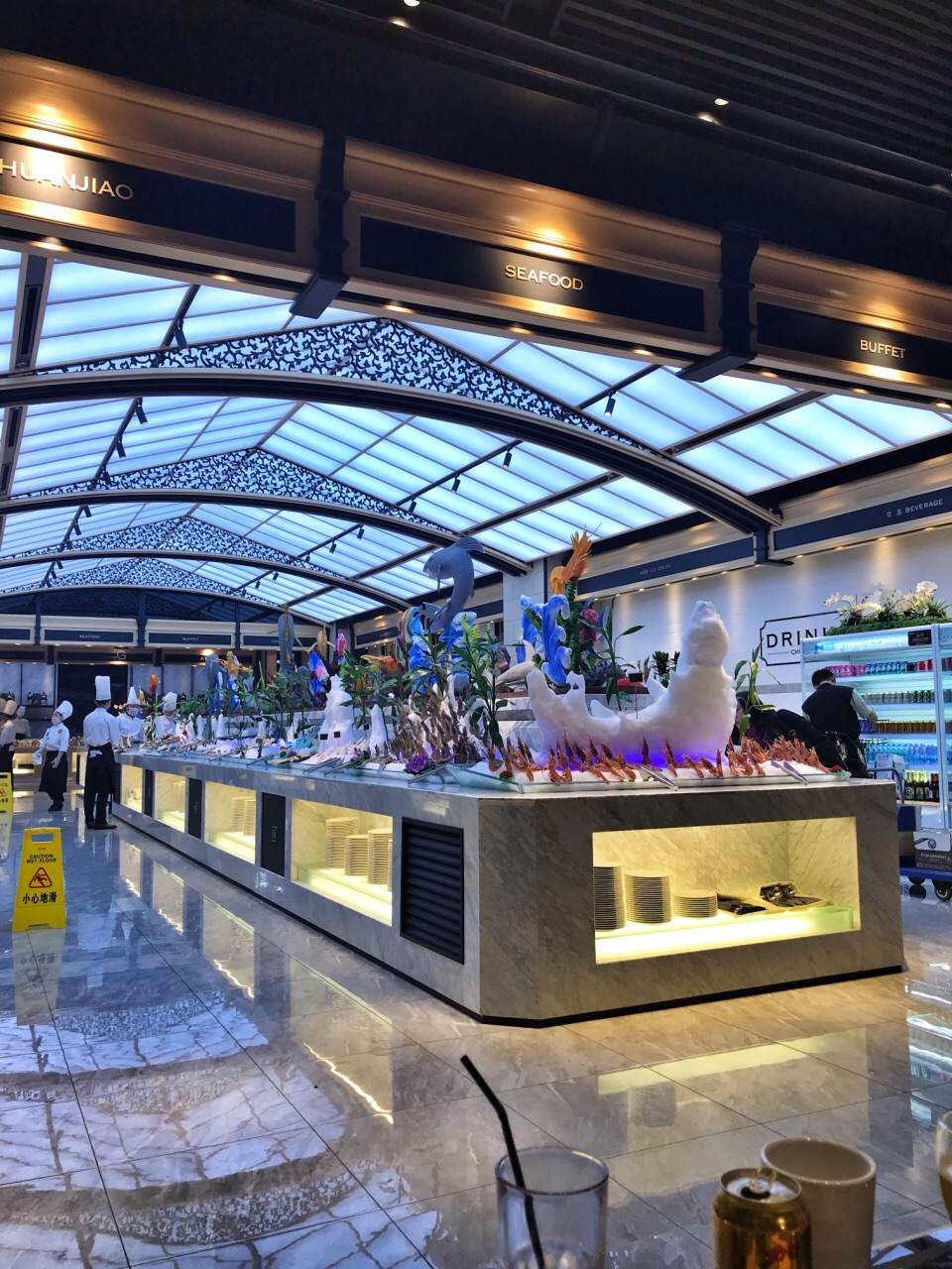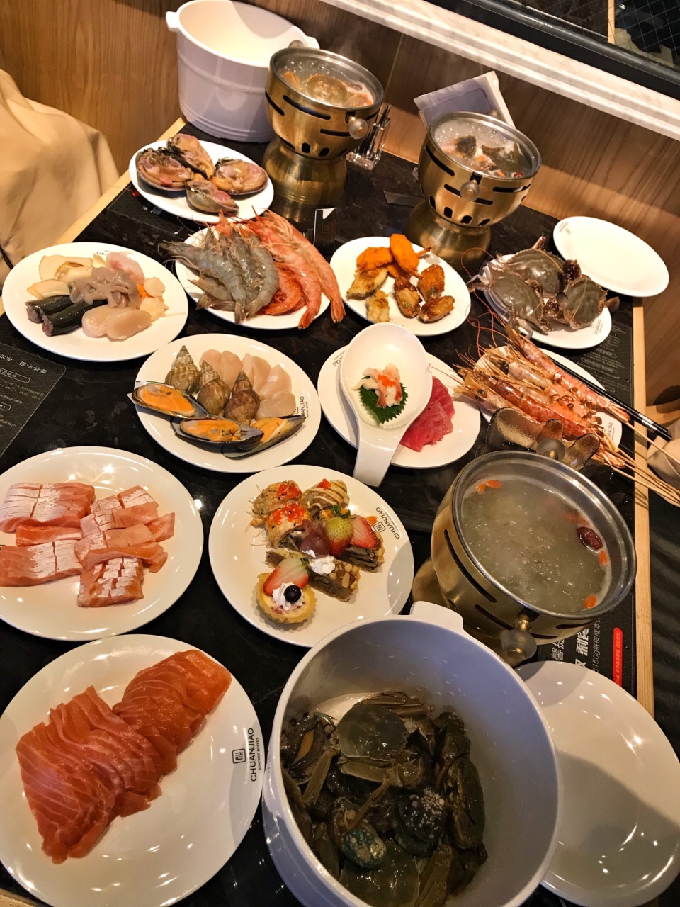 提前预约了座位,中午11:30准时入场,有预约的客人可以先入场,服务员引位到临近餐台的座位,方便取海鲜,用餐环境干净舒适,服务员太热情了,是非常贴心的那种热情,弄的我有点不太适应 食材新鲜,没有什么需要排队等侯的情况,海蟹一般,虽然鲜活但有些空,河蟹非常肥美,三文鱼腩涮着吃别有一番风味,不充会员没有北极贝供应,整体属于性价比相符的一家自助餐厅!
