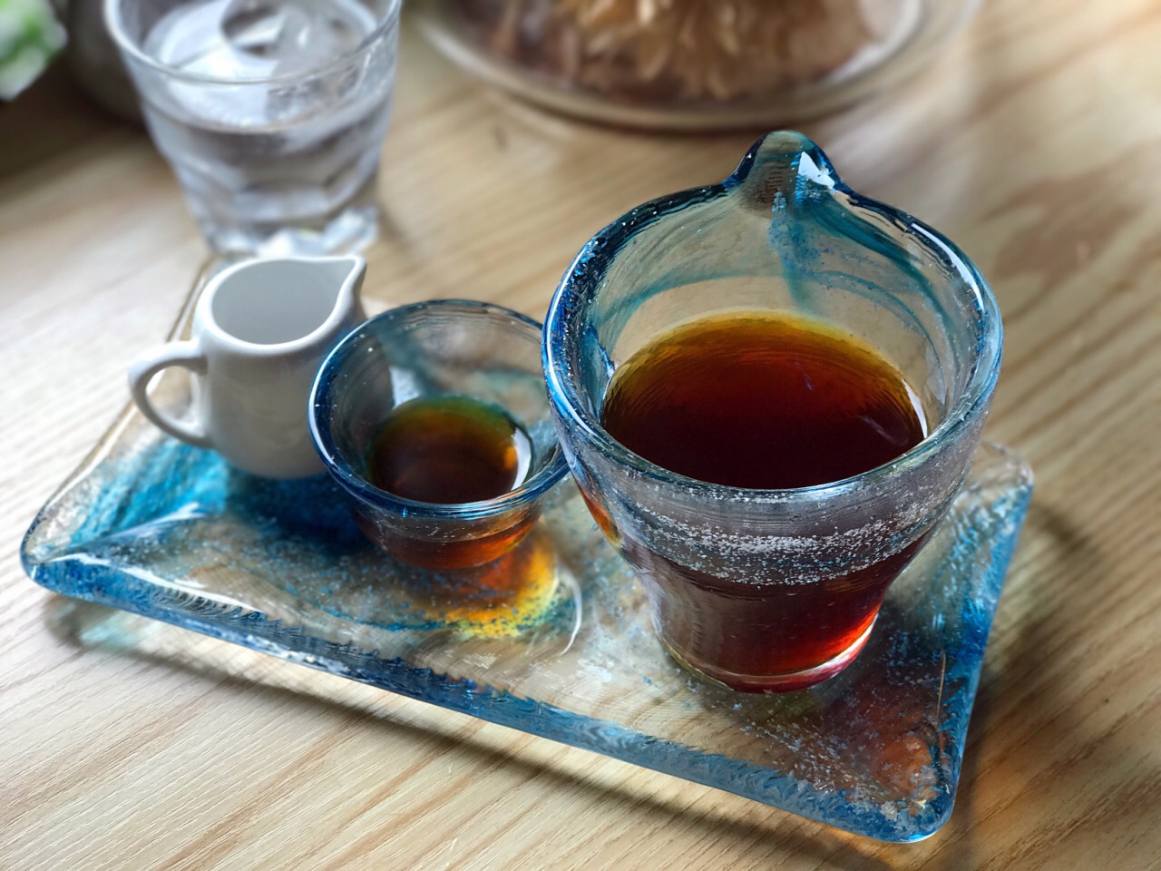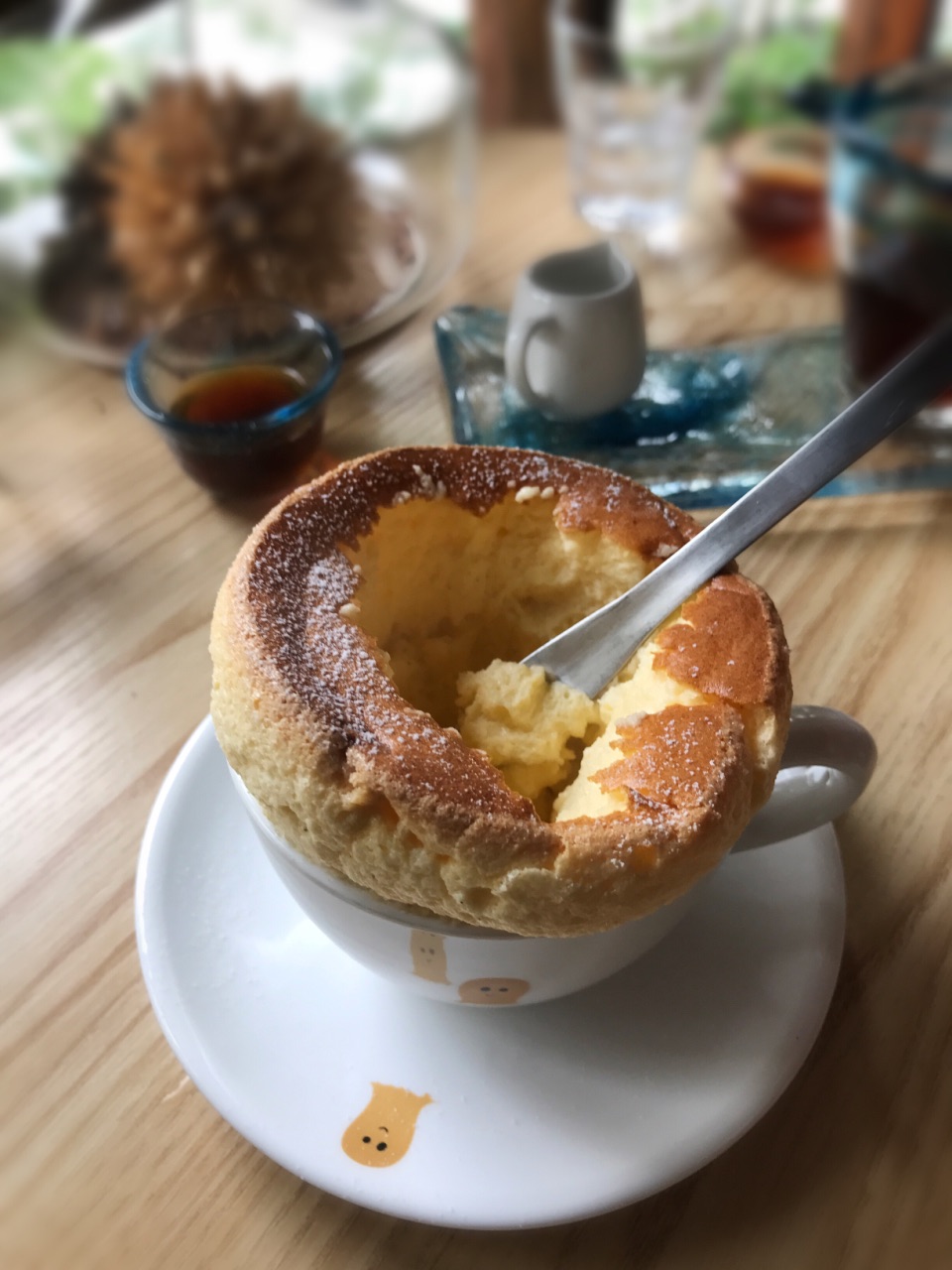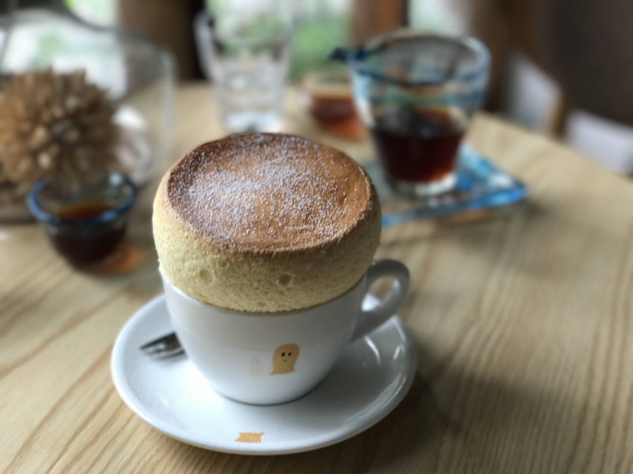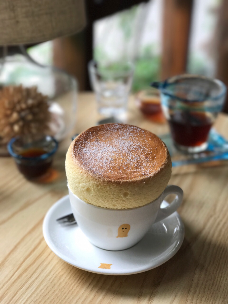 每年都要去杭州几次,有些咖啡馆是一定会去的,譬如这家叫“什么鬼”的,名字魔性,出品和环境却让人会莫名爱上。 印象最深的其实不是咖啡和甜品,而是老板那句“好气喔”,不知我有没有记错,妹子好像是长沙人。 在一个工作日的下午早早去占了座位,难得清静的只有我们一桌。 单品45元/杯,选了 #烛茫# 因为是一段时间前喝的,具体感受已不清晰,只记得入口的舒适度不错,是杯不错的单品,蓝色杯子也独具美感。 #舒芙蕾# 在这之前有好久没吃到靠谱的舒芙蕾了,等待一段时间后,吃到这款新鲜出炉、从卖相到口感都超越“合格”层次的舒芙蕾时,满足感很强啊。看着一分钟后就会垮掉的它,我迅速拍照后开始品尝。一层糖霜之下是浓浓的蛋香,勺勺入口都是甜蜜。特别注意了下,用的是日本兰皇鸡蛋,多了一层品质保证,很喜欢。据说最近甜品手艺又上涨了,有机会再去试试别的品类; 奶咖没喝,但看到其他客人带有龙猫图案拉花的拿铁,就知道拉花手艺的精细,下次要一并尝试。 【环境、服务】 小店空间不大,只有四张台,细节之处布置的很是用心。老板绝对是位热爱生活的姑娘,对待每一位顾客都非常热情。 推荐,到杭州一定光顾的咖啡馆。