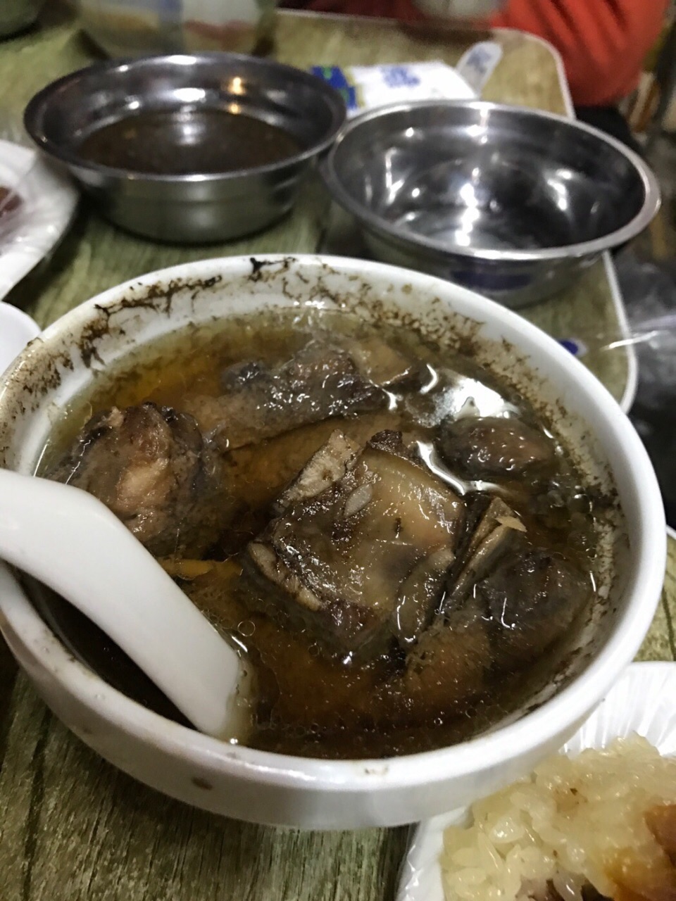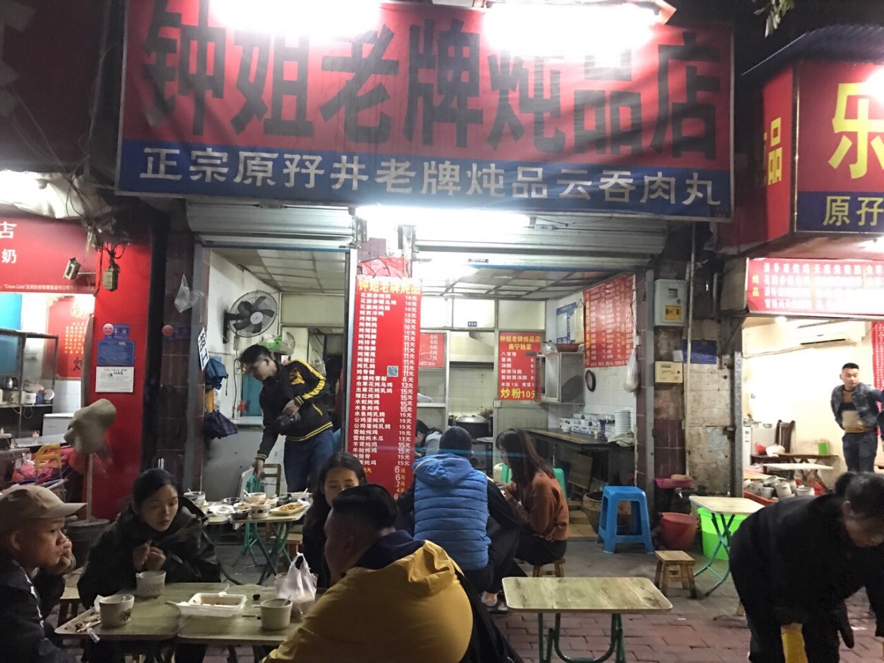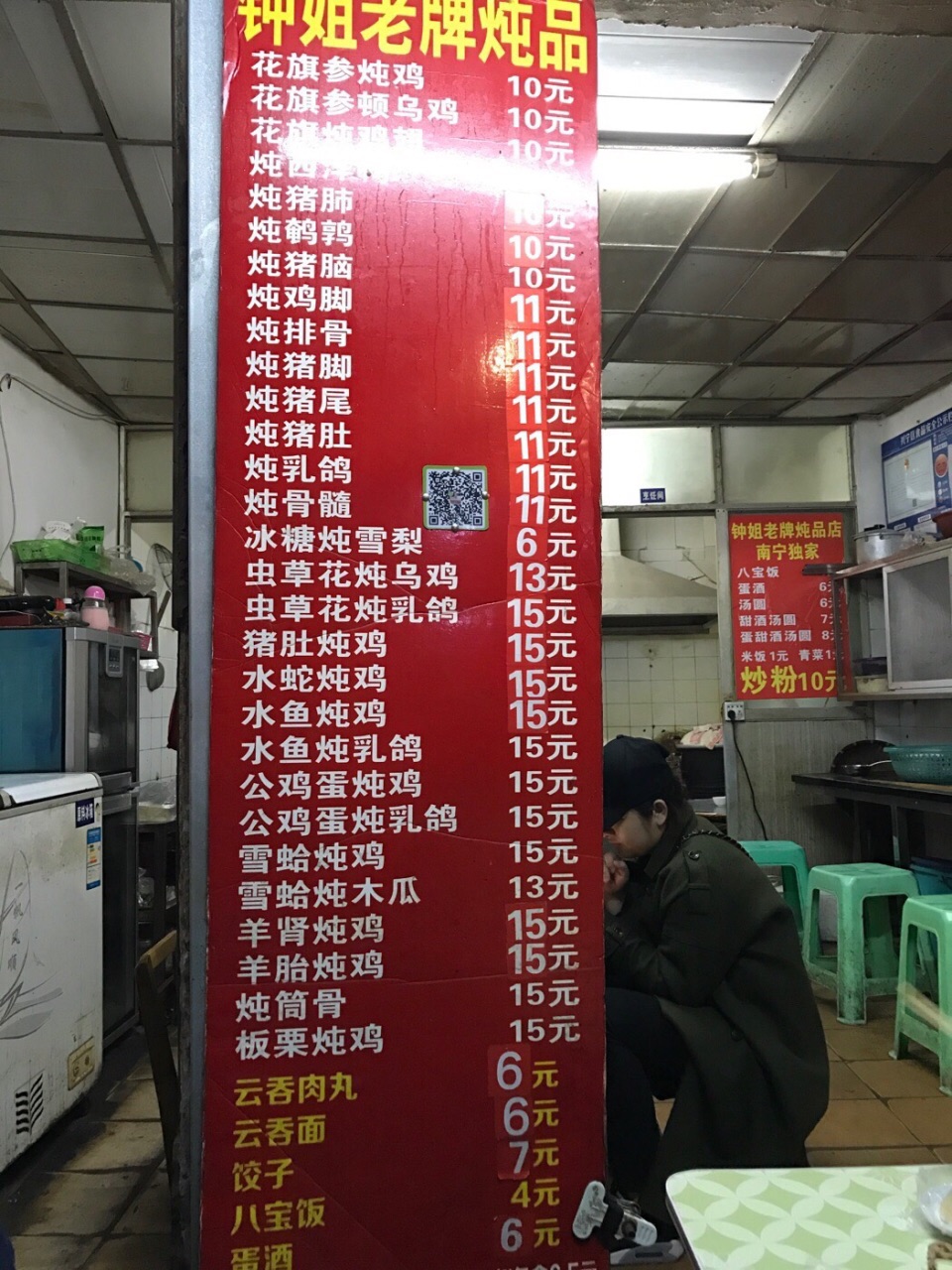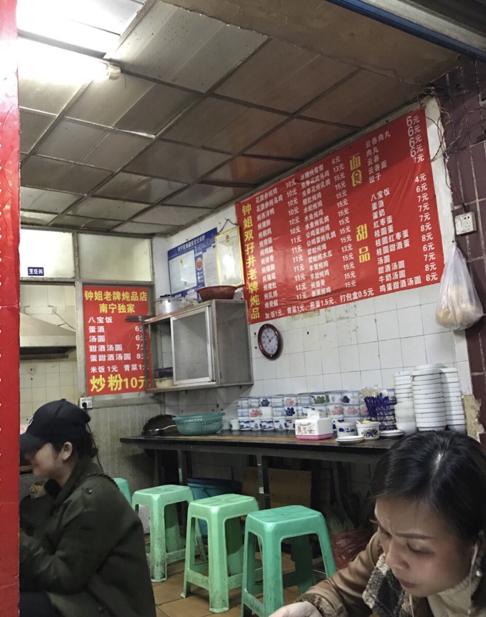 ✨同行小伙伴的朋友带我们来的这里,整条街上好多炖品店,每家的生意都很好!因为是挨着广东,两广之间的饮食有很多相通,所以广西也很喜欢喝汤(炖品)^_^ ✨这家是二十年老店,店里的伙计都是老南宁,环境一般,但是味道很好,我们点了好几份炖品,每一款都是诚意满满的一盅,汤料十足,虫草花下得可不轻手,汤味浓甜;价钱相当划算的 除了炖品,炒老友粉还有八宝饭也是店里特色,搭配着炖品差不多也是每桌必点的^_^ 宝宝们来南宁晚上时间可以考虑来这里宵夜!感受本地特色美食!就是如图整体环境差了点ಠ_ಠ