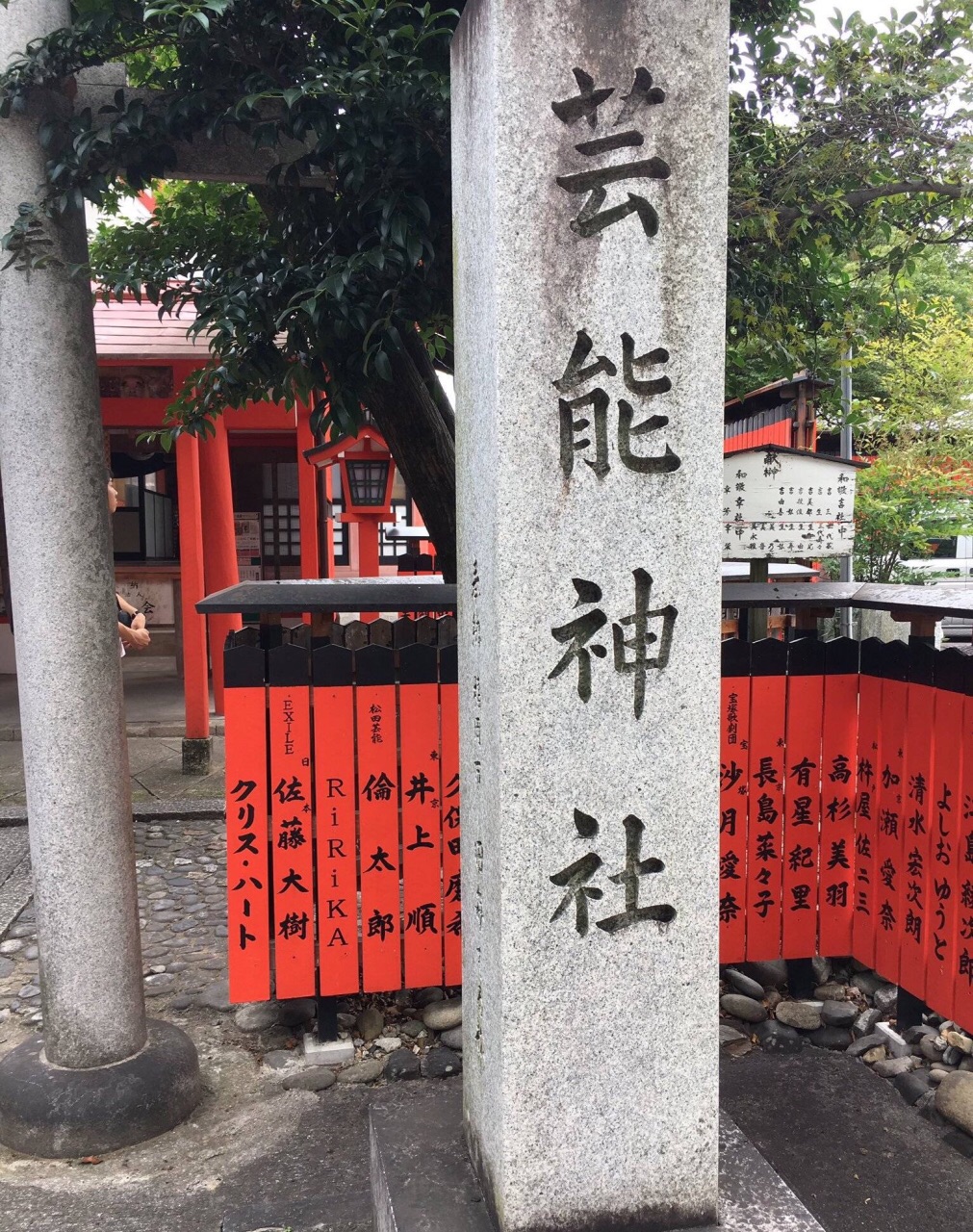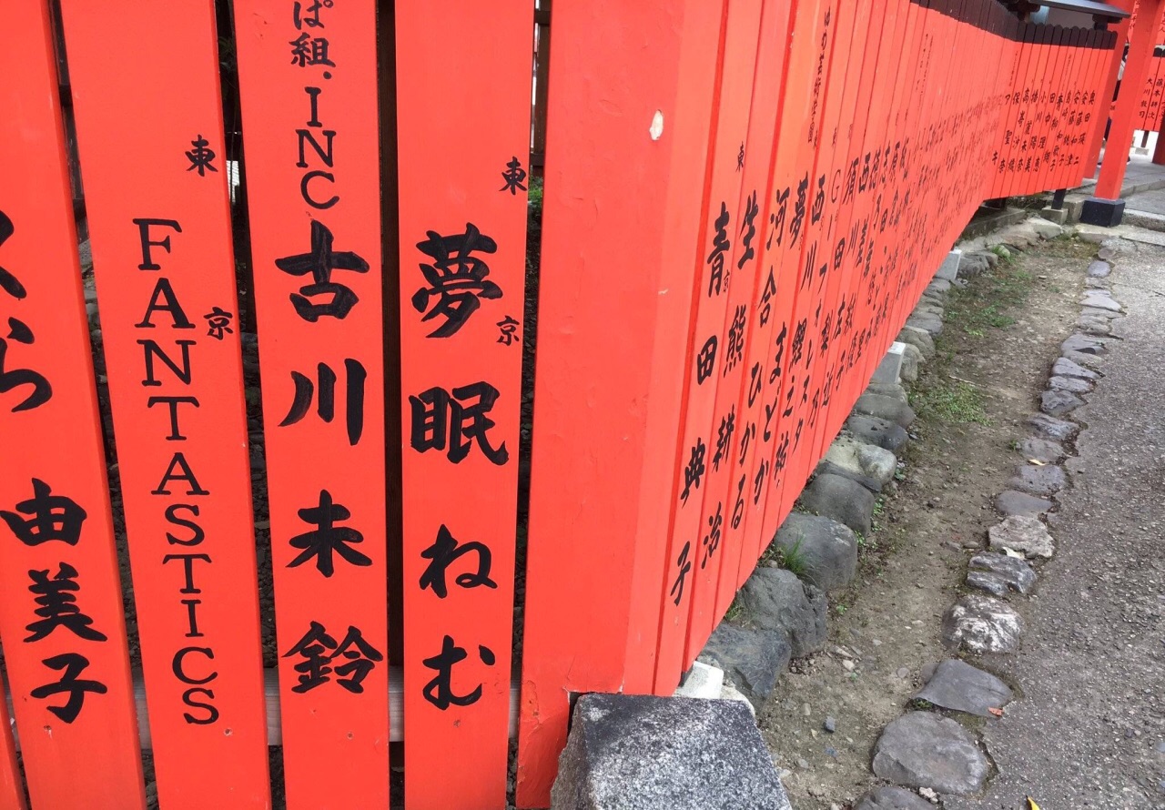 车折神社,日本有名的艺能神社,好多演艺圈的都在这里捐过“玉垣”(神社周围的木栅栏)因为两年就撤所以八团和嵐的都没有了。主要列几个:サタプラ、手越祐也、中山優馬、横山由依、GReeeeN、金子修介、あ〜ちゃん、松井玲奈、相武紗季、有岡大貴、平愛梨、平祐奈、河合郁人、神山智洋