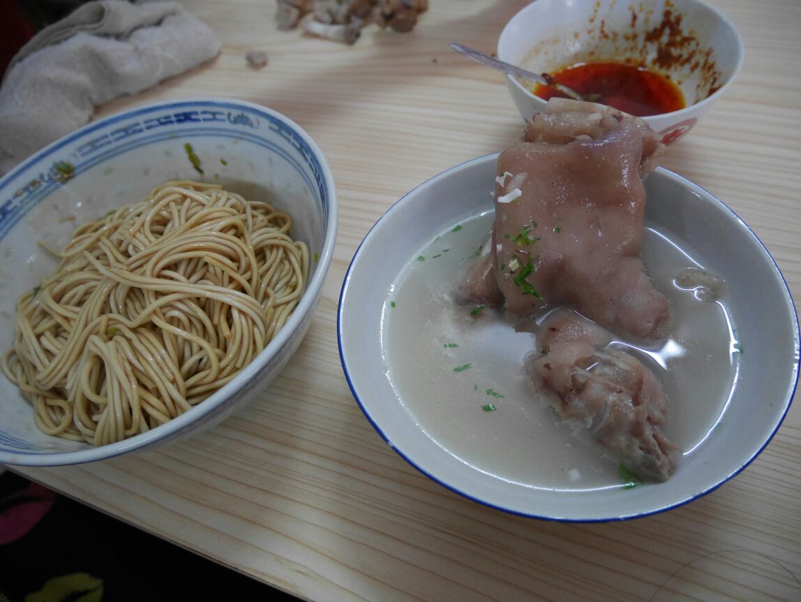 开了几十年的老店,一直很火,前阵子还变成了网红店,顾客多付了几千块面钱急寻当事人的拾金不昧。找了好久然后各种排队,秩序井然。观察桌面上的种类点了猪蹄面,小排面,肠肠面的点击率也很高。猪蹄面加雪菜更好,猪蹄汤味道很不错,半个猪蹄,汤汁很香,面条微甜热拌,调味很好吃。