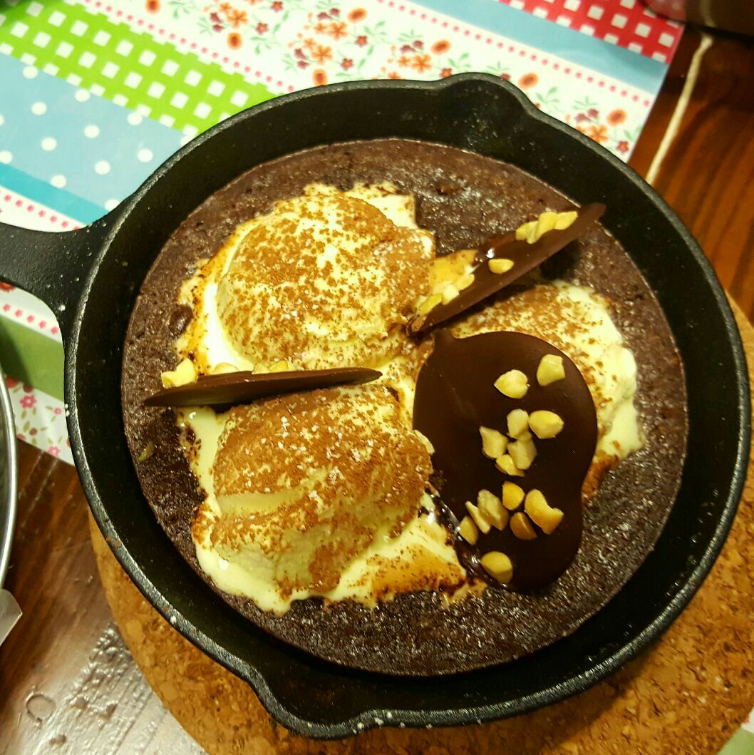 『吃饼人食肆』 隐秘在南城街南侧铜锣湾花园里的西餐馆,这一带有很多美味的私房菜,看到这家新菜,种草已久,终于来拔草了。 西餐讲究按照顺序吃饭,按照头盘冷餐,主菜,汤,甜品的顺序,吃有序,才能吃味美。 开胃菜,俄式冷酸鱼,重磅推荐,这道菜真的非常好吃,选用深海鳕鱼,煮熟的鳕鱼肉,必须要冷藏6个小时以上,才可以使用,保证有清爽开胃的口感,配上秘制的俄式酸酱和酸黄瓜片,酸黄瓜腌制很到位,酸甜口,没有过分的酸,很开胃。 伊比利亚火腿奶酪塔,奶酪超正点,纯肉火腿,没有一点淀粉,烤熟的小番茄做点缀,不仅造型美观,味道也很棒。 航母沙拉,超级实惠,很大一份,金枪鱼,切片鸡蛋,黄瓜,小番茄,独家搭配熟芝麻,混合着沙拉酱更张哦 接下来就是重头戏啦,该吃主菜了 波士顿焗龙虾意面,波士顿龙虾超级大,最适合做焗龙虾了,鲜美的龙虾肉经过烤制,混合着芝士的香甜。 苏格兰蟹海鲜饭,超大面包蟹,超多蟹子,蟹肉饱满肥美,搭配秘制芥末酱,别有一番滋味,蟹爪肉质更富弹性,吃完螃蟹,再把芥末酱淋到饭上,重口味爱好者的最爱。不加酱汁也是很好吃的,老板独具匠心,在饭中加入了,藏红花,这种天然香料的香气很特别,确又很难用言语形容,挑逗舌尖的味蕾,必须要亲自尝试,味道相当独到。(因为加入藏红花,孕妇慎食) 北非蛋,番茄酱焗新鲜口蘑菌类,彩椒丁,最后摊上鸡蛋,烤制半熟,色香味俱全。 烟熏三文鱼彩虹贝果,颜值超级高,搭配的烤小番茄,依然是既美观又美味。 虽然已经吃的很饱了,但是对于女生来说,依然有第二个胃来吃美味的甜品。 心太软,可谓冰火两重天,巧克力熔岩蛋糕和香草冰淇淋,一黑一白,一凉一热,内热外冷,巧克力熔岩蛋糕,口感细腻,这道甜品更像是偶像剧中的男主角,看似外表冷酷,内心却充满爱。深得女人心。 金箔提拉米苏,又是一道颜值超高的甜品,可食用金箔的点缀更是锦上添花。这道传统甜品想要做好吃,特别考验厨师的功底,来这里吃绝对不会错。