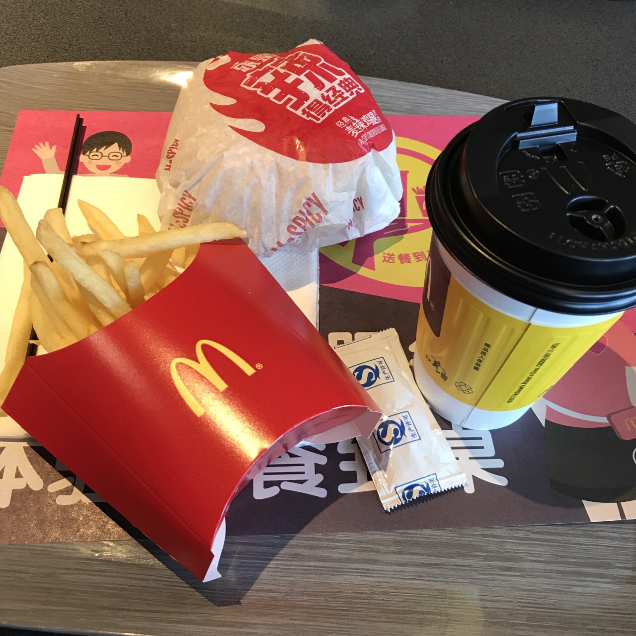 麦当劳近日因为金拱门的更名,被小伙伴们一直拿来打趣。于是中午大家一致决定去吃金拱门。 自助点餐机还是挺便利的,还可以送餐入桌。 经典麦辣鸡腿汉堡套餐,已经吃不到以前工作日午餐15元的价格,22元。 薯条还是那个薯条,汉堡还是那个汉堡,只希望口味和品质不要有影响,给大家的便餐提供便利。