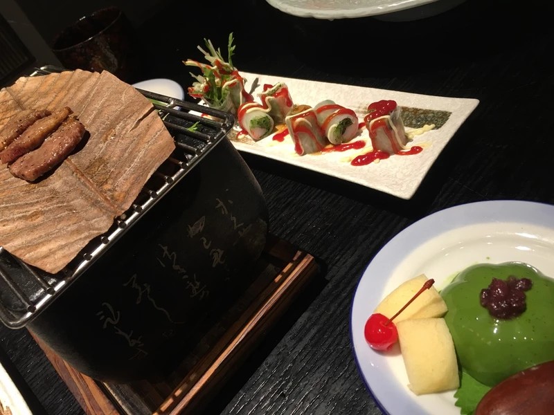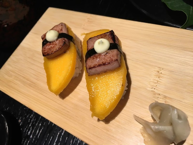 环境有点吵 上菜速度也很快。海鲜汤最佳很鲜美 鹅肝寿司好吃,性价比还不错 下次还会来。 鹅肝芒果卷:鹅肝一直是我的最爱,加上芒果之后很清爽,不会在给人一种很腻的感觉! 五花肉芦笋卷:两个字 不腻 烤牛舌:直接吃的话会有一些腥味,但吃的就是这个味道。