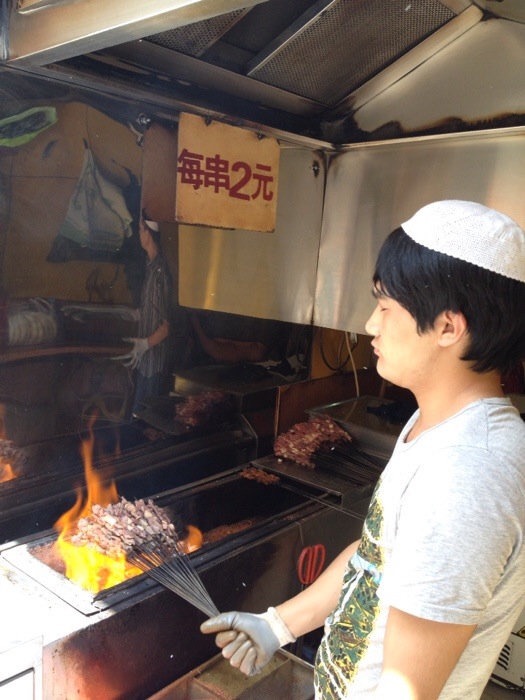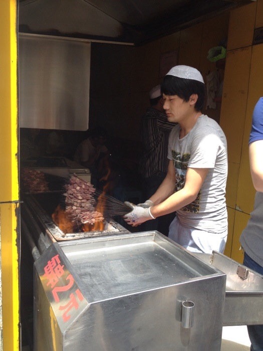 这家也是小伙伴推荐的,说是从小吃到大,我也不知道是不是吃错了店,感觉味道一般呀,特别小的一个店,但是大家都排队来吃串,还有从旁边打包凉卤面来这里配着串吃的~ 都是小串,2元一串,可以吃出羊肉本身的与这边的区别,但是调味真心不如这边的,很单调的辣而已,可能本地就是这种风味吧,不是很喜欢~ 仔细看了烤串的过程,也有不同之处,似乎更喜欢旺火烤制,让肉串在猛火中来回的翻滚~