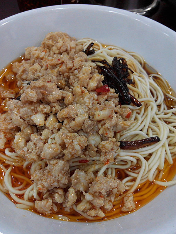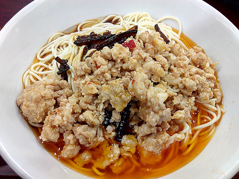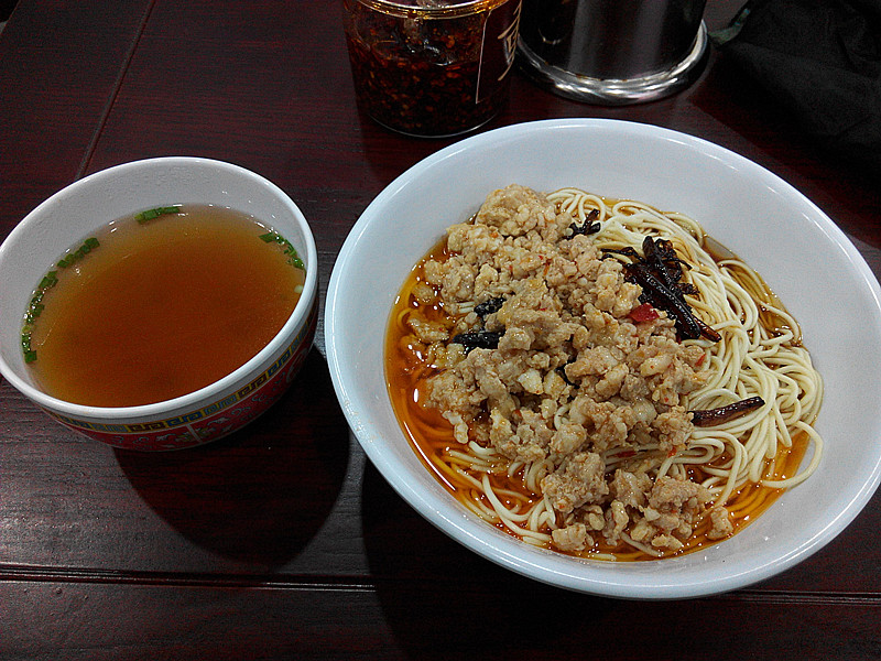 ...,准确的说是葱油拌面+辣肉,酱油汤搭配,面条可以,辣肉糜,不够香,店里宣传画中的辣肉色彩更艳丽