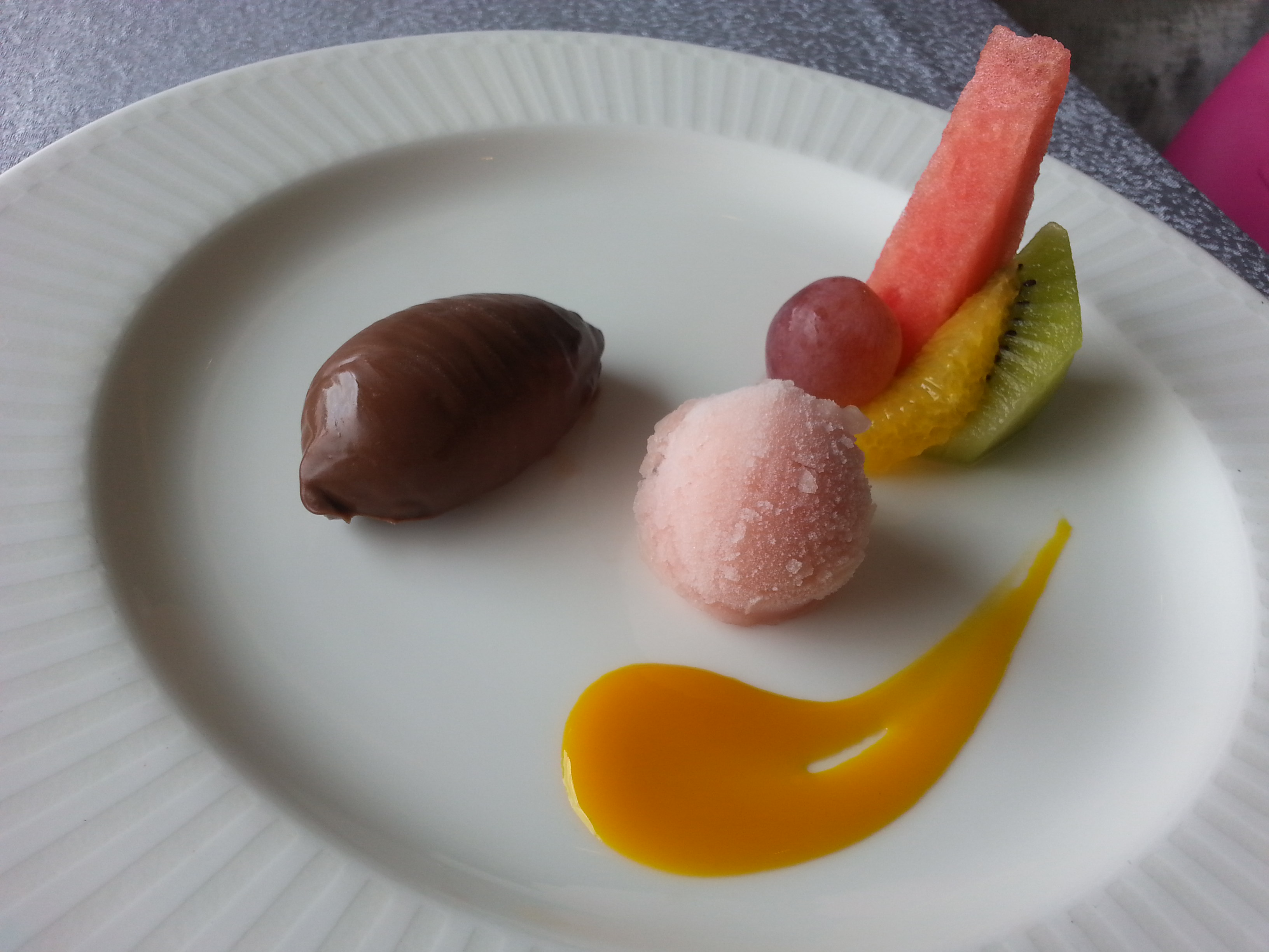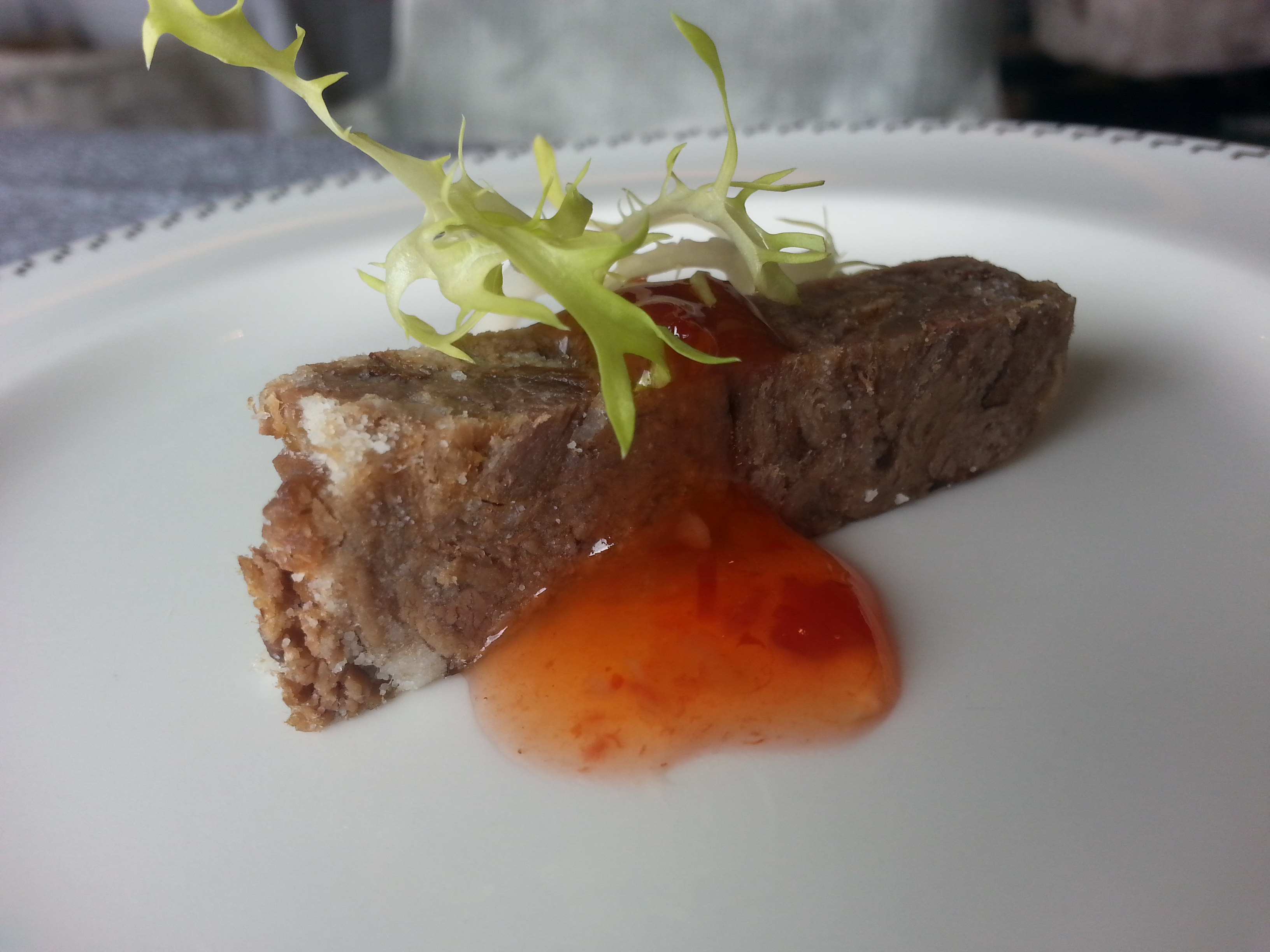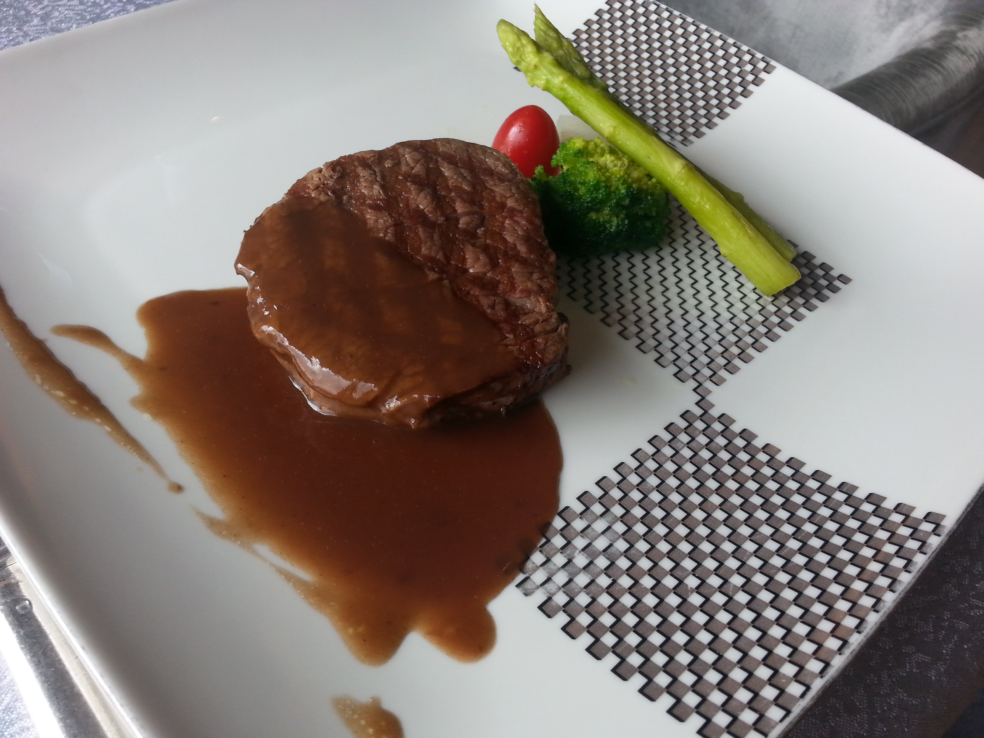 欧陆餐厅 茂名南路花园饭店33层 午市11:30-14:00提供 这里有魔都“唯二”的牛肉清汤 另一家就在本座的“山茶花铁板烧” 穿过大厅 经过绿洲酒吧 标有33楼直达观光电梯 只需一按钮 带你体验观光电梯的无限美景 整个上升空间没有一丝不适 出了电梯 需要走过一条长廊 (会先经过山茶花)到底的黑白格地砖则是欧陆的入口 有两片区域 大小不一 周末的午市也显得冷清 外场包场的节奏 哈 顺顺利利的靠窗景观座 这里的视野的确很棒 阳光不会太刺眼 从33层可以清晰俯瞰整个花园 view极佳 午市分为三档 选了性价比最高的第二档298元套餐+15%服务费 包含想吃的牛肉清汤 服务员会亲自递上餐前包 篮子里的面包可任选~甜品前都可以添加 黄油早早的备好 基本以法式面包为主 说实话 出品比不上一些西餐店的 硬的没嚼劲 吃起来没韧劲 『圣培露天然有气矿泉水』¥78 500ml 『牛肉冻配甜辣酱』算是赠送的开胃前菜 牛肉冻肉质鲜甜 没有一丝柴味 就算不和酸辣酱一起食用 也棒极了 『法式嫩煎鹅肝配鲜果』一块鲜嫩多汁的煎鹅肝 配了四分之无花果 柔和且入口即化的鹅肝 没有一丝的腻味 搭配甜味的无花果 看似不出彩的一道前菜 却令人印象深刻 『欧陆精致牛肉清汤』毫无油腥气的清汤 加了几片菌类 看似一壶茶汤~清汤寡水 却浓缩了牛肉的精华 饱含丰富的蛋白质 醇香但不厚重 名不虚传 『网烤三文鱼 白脱蒜蓉风味』色彩对比度极佳 整块的三文鱼经过烘烤 肉质更为紧密 搭配蒜蓉 口感更为浓重 『网烤澳洲腓利牛排红酒沙司』盘子的几何造型凸显了牛排 五分熟没有一丝筋筋拉拉之感 肉质饱满而丰腴 『有机嫩叶沙拉』解腻的绿色蔬菜 红酒调味的酱汁 个人更喜欢色拉酱 『姜味巧克力慕司仙人掌雪葩』出品很普通 水果、雪葩、巧克力 可入嘴的那一刻 幸福感油然而生 带有姜味的巧克力丝丝顺滑 柔和的不带一丝颗粒感 粉色的雪葩惹人爱 仙人掌调配的?淡淡的清甜 仙人掌这个味儿 咖啡&红茶 餐后饮品 各选了一份 配了牛奶 和白砂糖 可以自己diy变身奶茶哒 这里来谈下15%服务费 毕恭毕敬 缺乏专业性 服务期间犯了两次错误 1. 餐前包不小心掉在桌子上 可服务员依旧把它拾起 放进了我们的盘子 2.店经理倒圣培露的时候 居然把瓶盖一并倒进了杯中 意外的是 没有任何说法 取出瓶盖 继续让我们饮用 作为一个品牌西餐厅 这种服务让人堪忧 不能说不好 只能说不专业 缺乏灵动性 由于服务的关系 本来五星的店 硬生生被打回了四星 可惜~