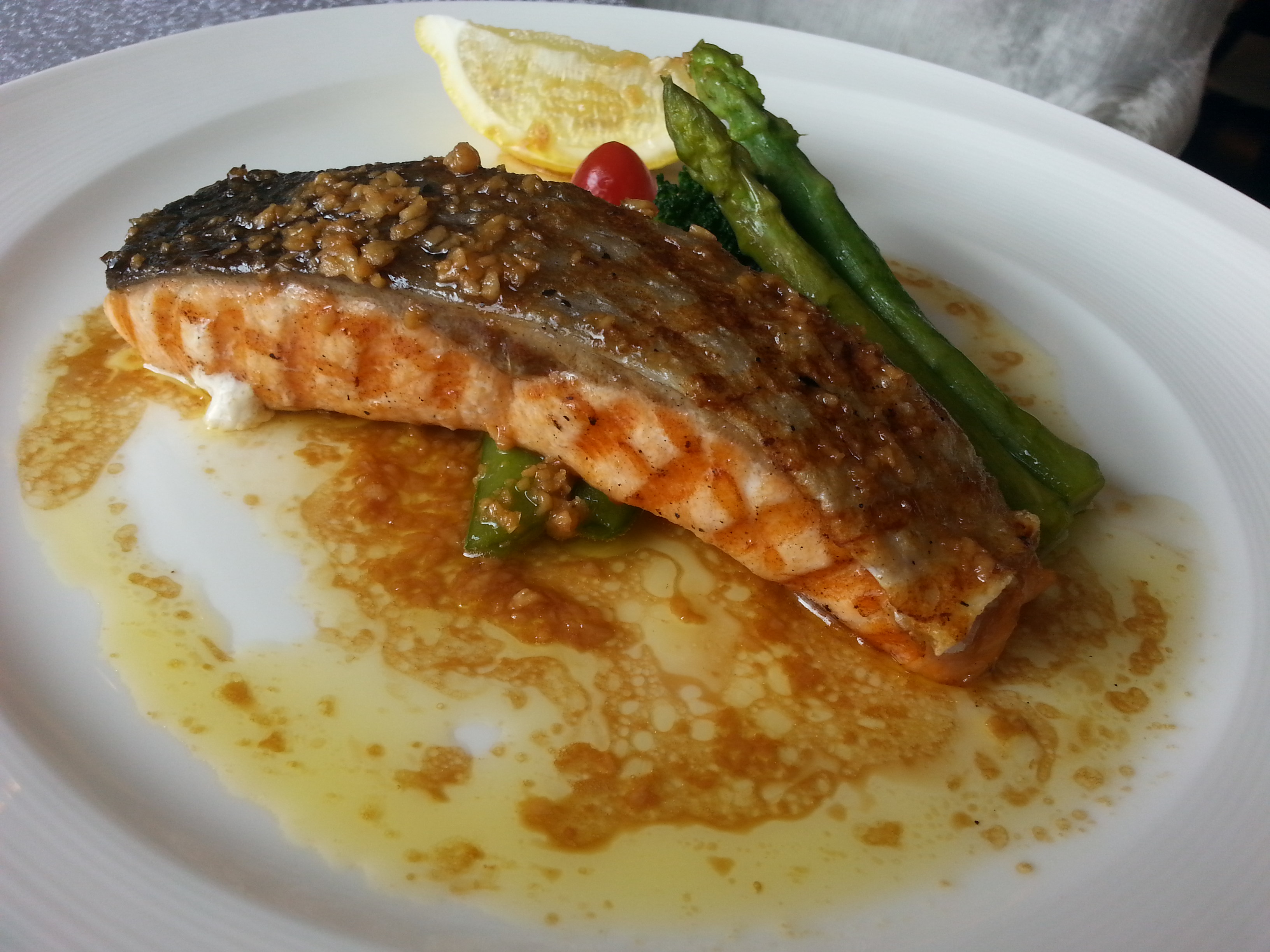 却浓缩了牛肉的精华 饱含丰富的蛋白质 醇香但不厚重 名不虚传 『网烤三文鱼 白脱蒜蓉风味』色彩...